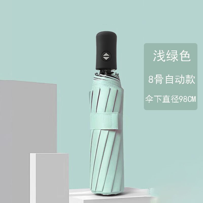 • [자동] 8 뼈 검은 플라스틱 우산 라이트 그린