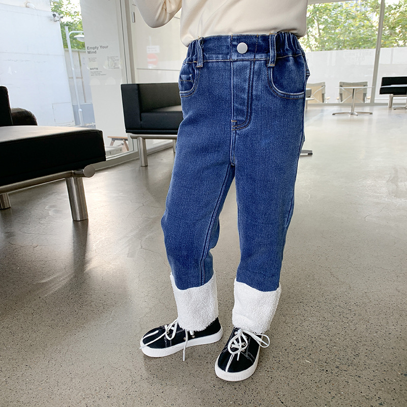 [기모] 어린이 복합 봉제 스티칭 바지 중간 및 작은 소녀 대나무 스트레치 슬림 청바지