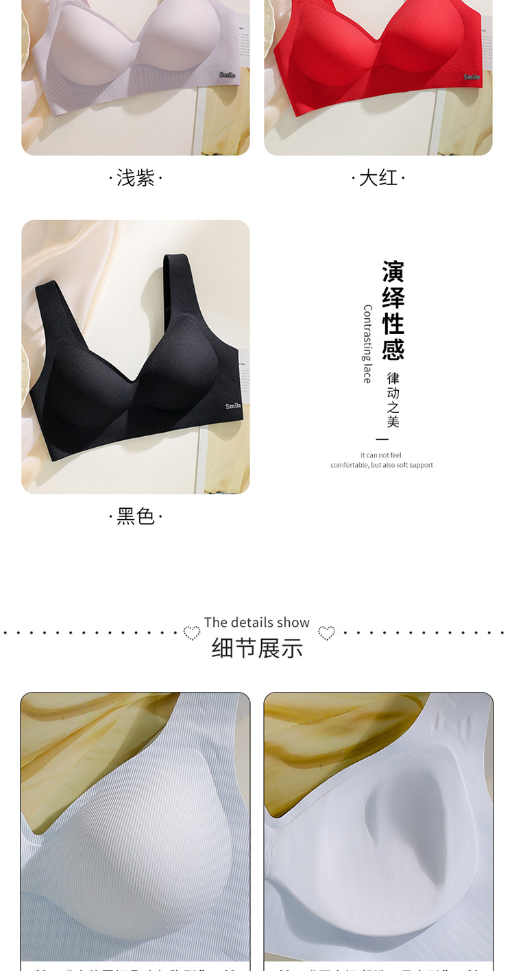 여성용 원활한 속옷, 큰 가슴, 작은 가슴, 가슴을 밀고 모으고, 강철 반지 없음, 처짐 방지 조끼 스타일의 얇은 브래지어스토어 가기