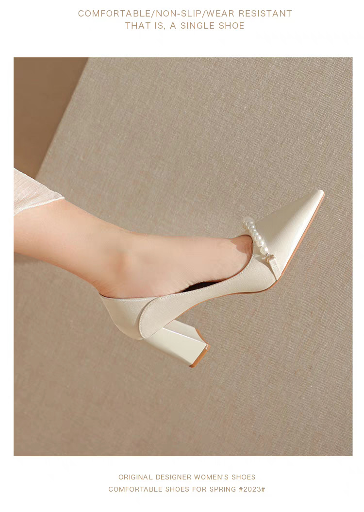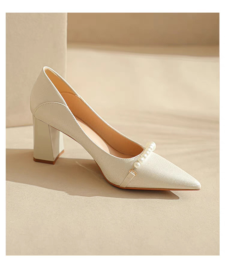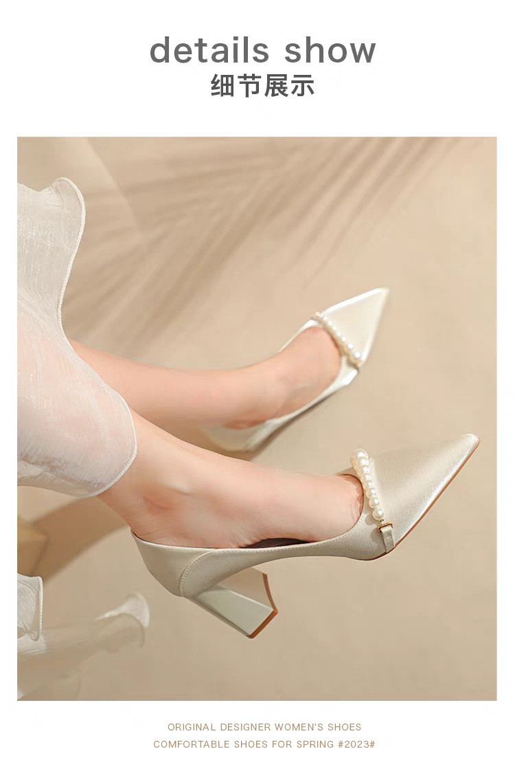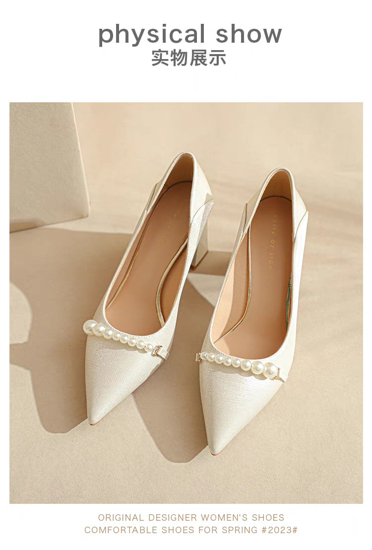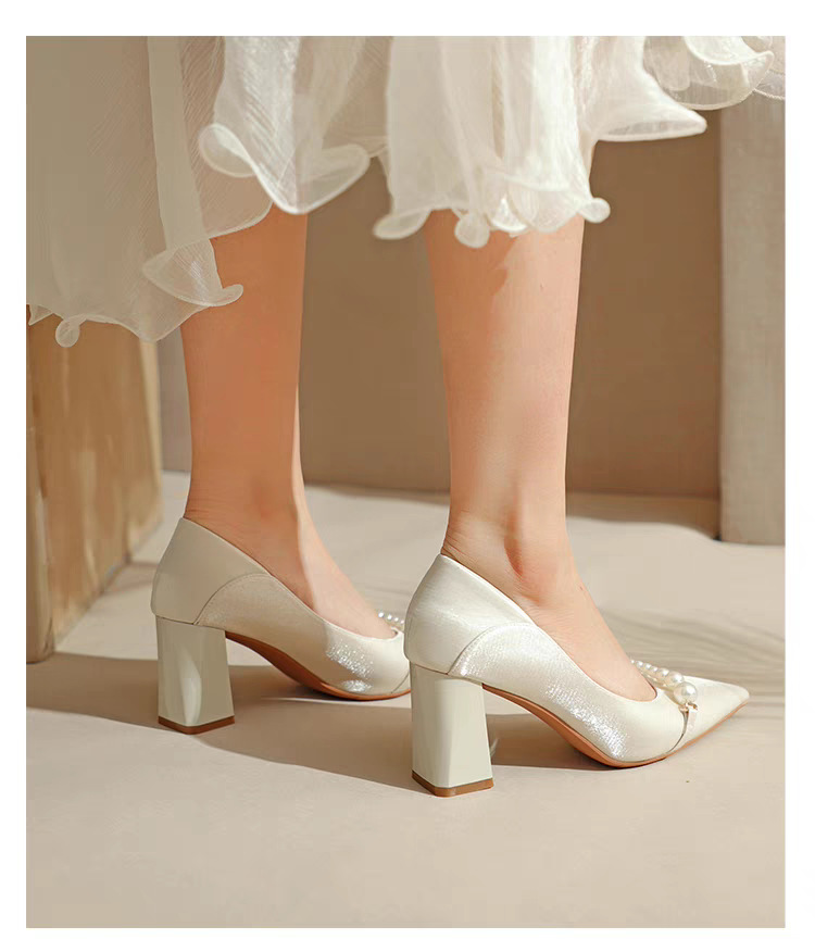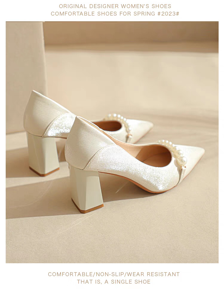 하이힐 여성 청키 발 뒤꿈치 여성 흰색 청삼 신발 들러리 신발 여성 2024 봄 매일 결혼식 신발 여성 신부 신발스토어 가기