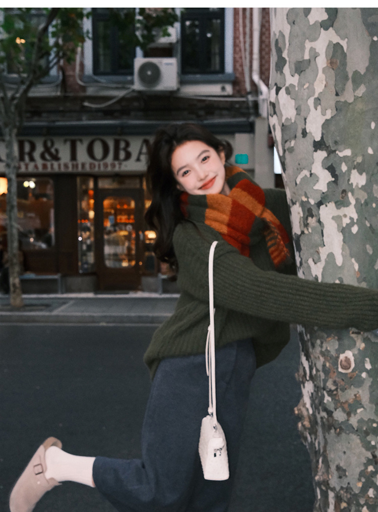 [내 머리는 둥글지 않다] 무지개 스카프 여성의 가을과 겨울 두꺼운 따뜻한 목도리 한국식 학생 귀여운 소녀 스카프