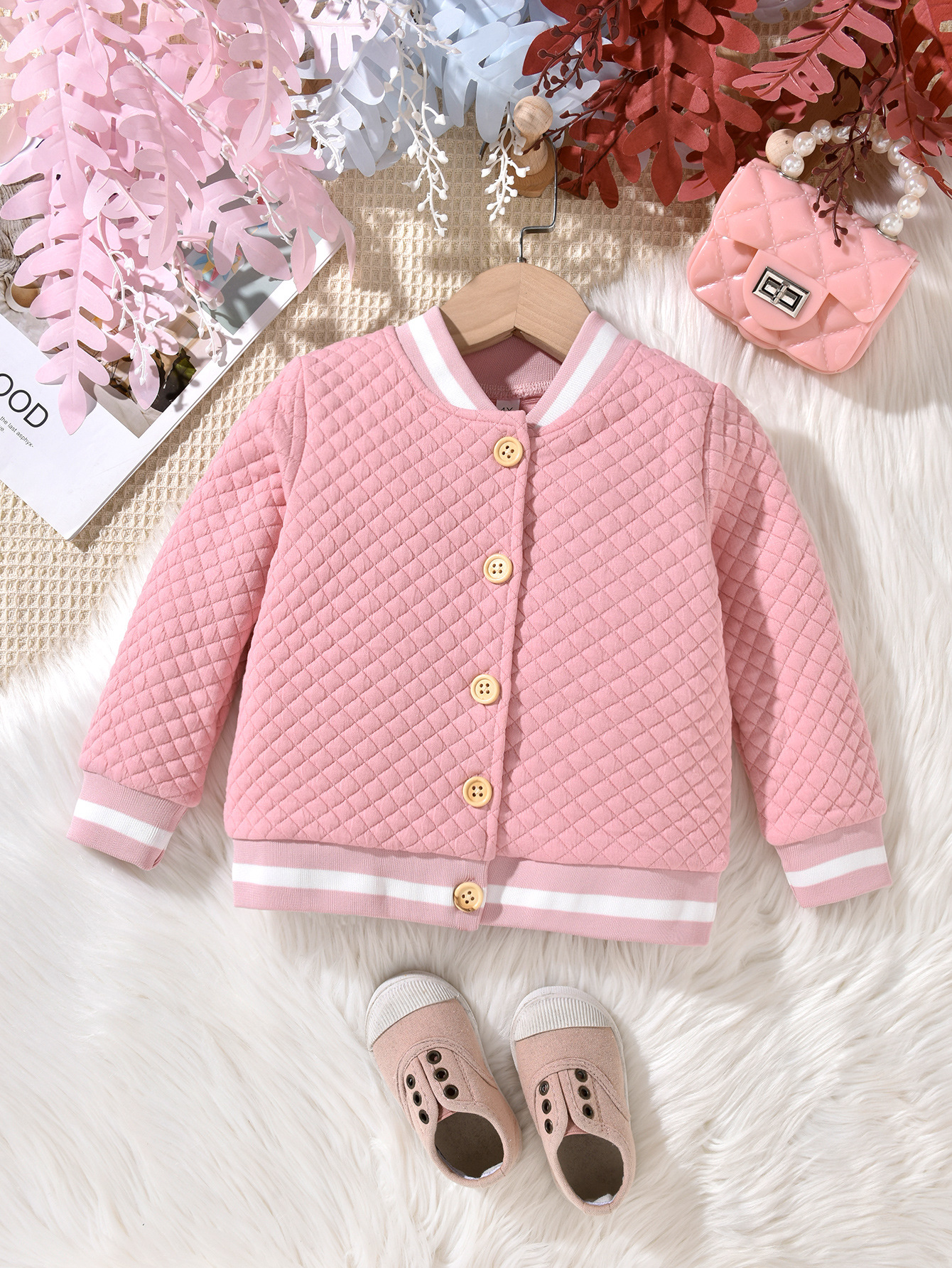 2023 국경 새로운 패션 달콤한 귀여운 양털 단색 버튼 스탠드 칼라 재킷 코트스토어 가기