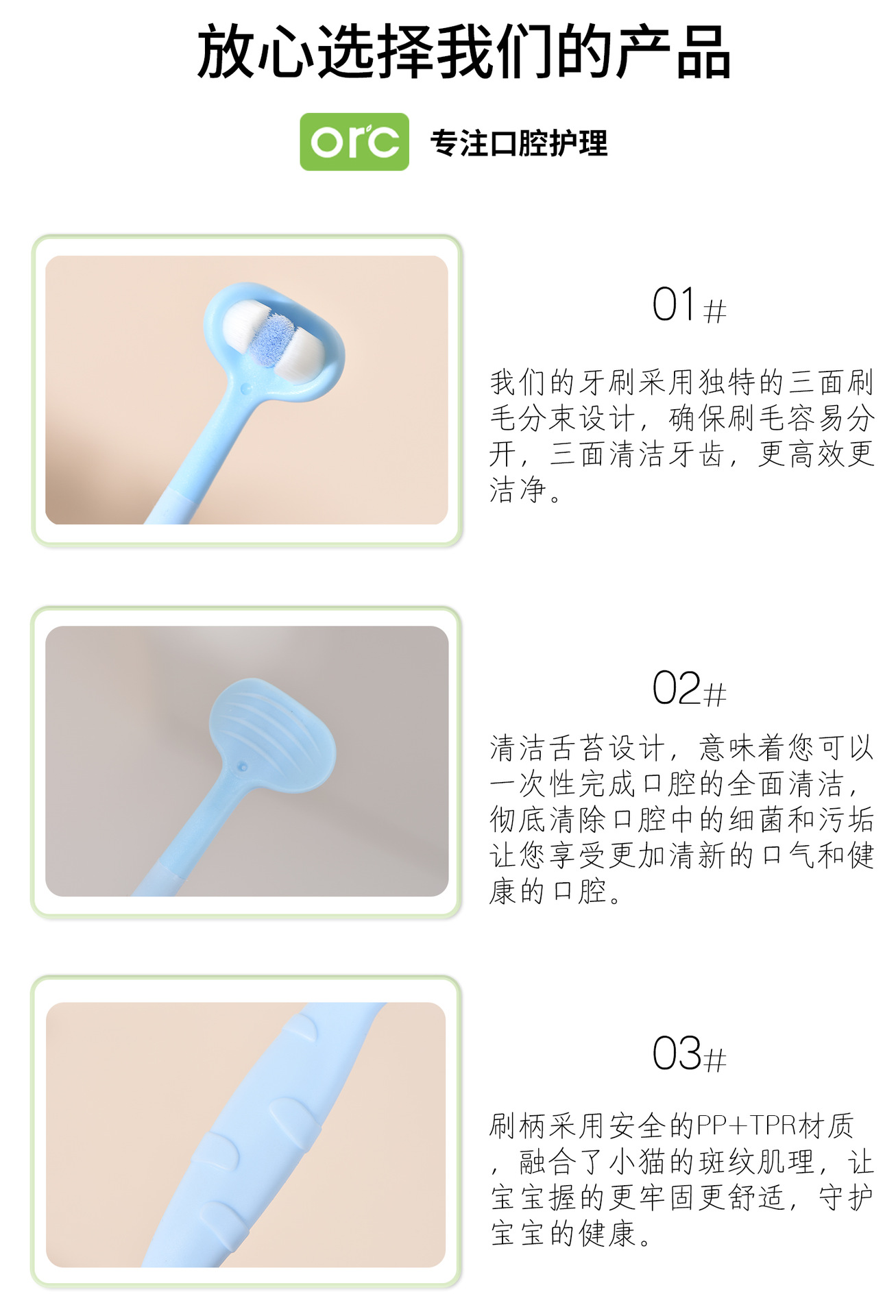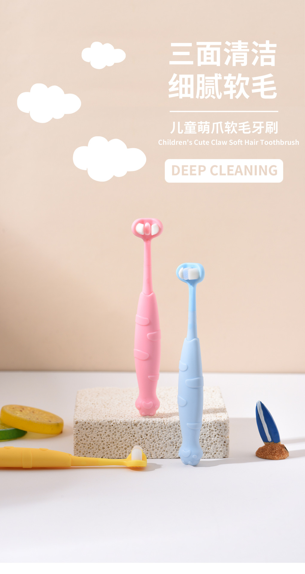 오크 3 면 1 만 머리 칫솔 어린이 칫솔 고양이 발톱 모양 만 머리 학생 칫솔 슈퍼마켓 재고 도매