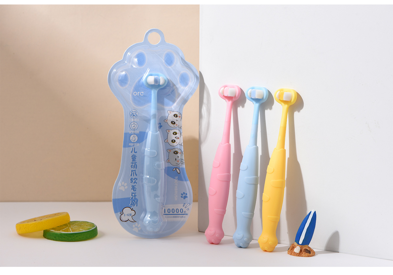 오크 3 면 1 만 머리 칫솔 어린이 칫솔 고양이 발톱 모양 만 머리 학생 칫솔 슈퍼마켓 재고 도매스토어 가기