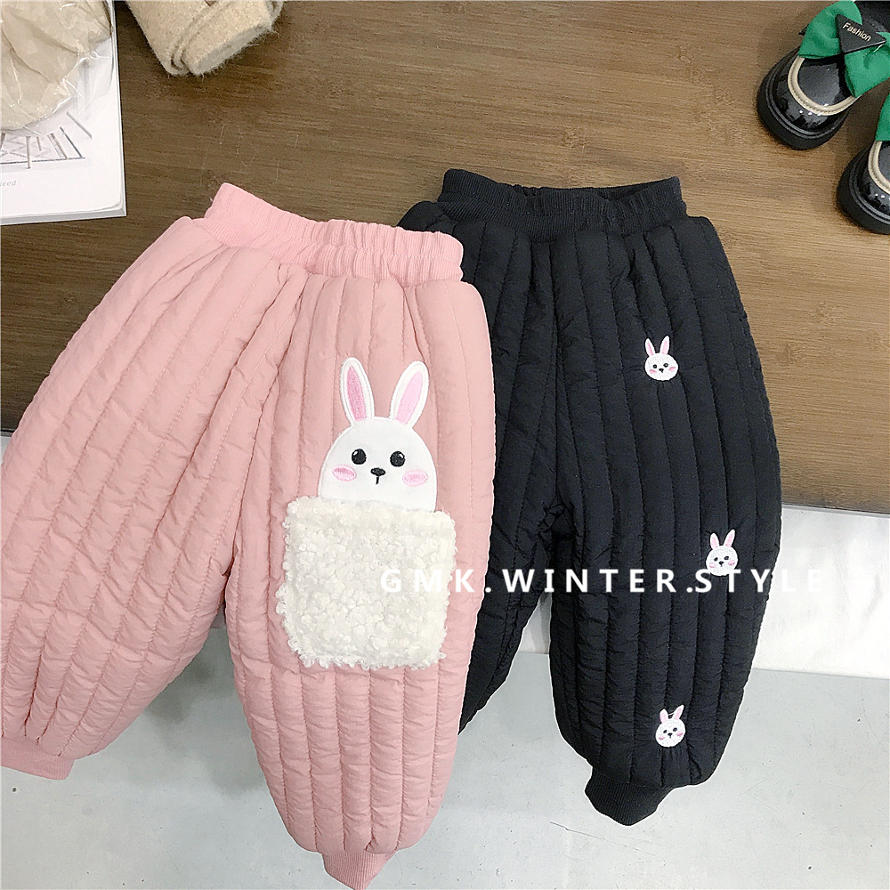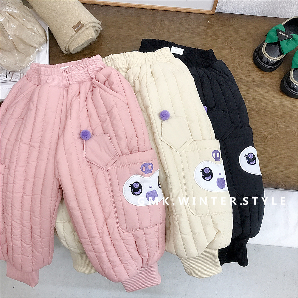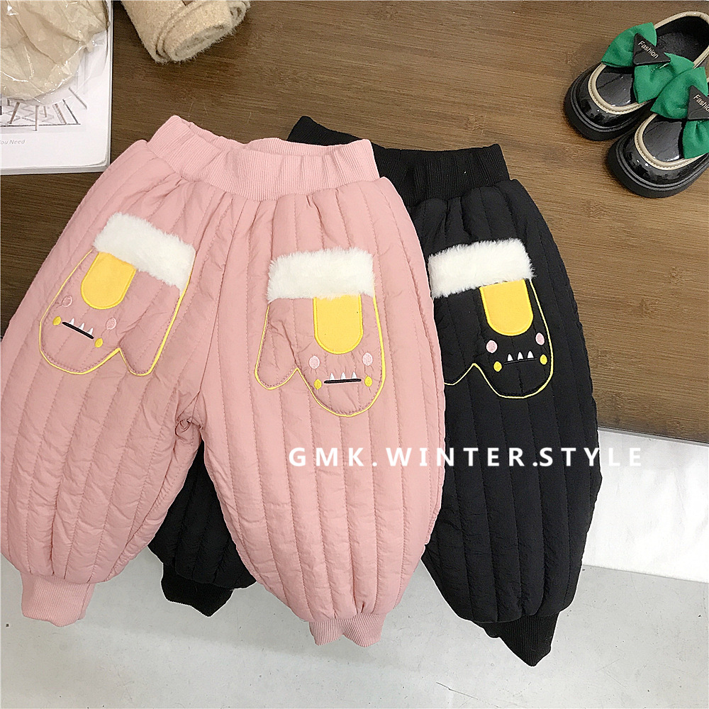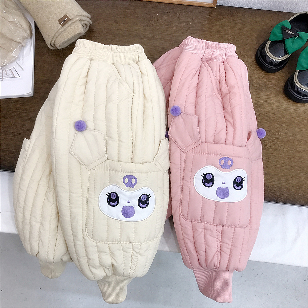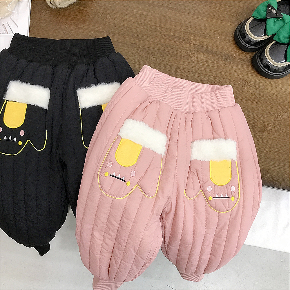 소녀 만화 코튼 바지 겨울 3 층 두꺼워 어린이 가을과 겨울 아기 겨울 옷 쿨로 미 플러스 벨벳 바지 대외 무역스토어 가기
