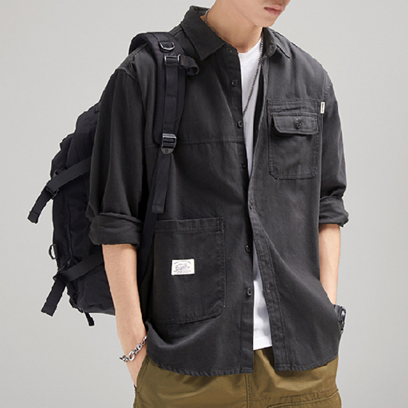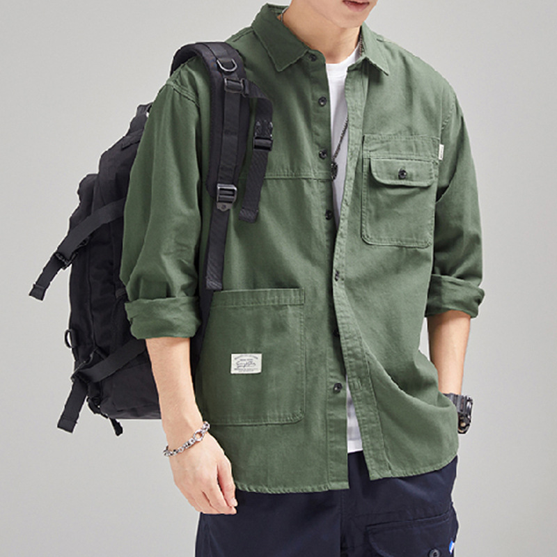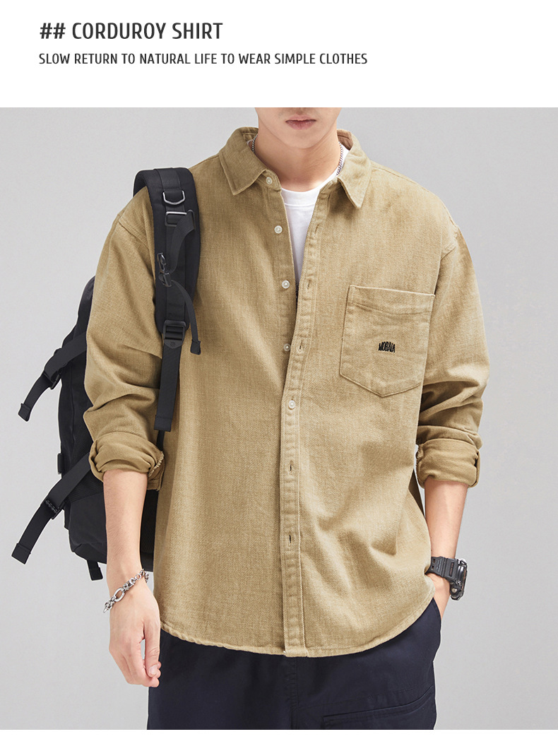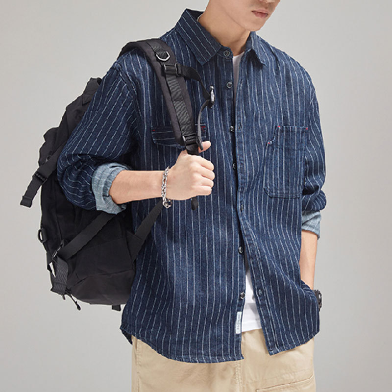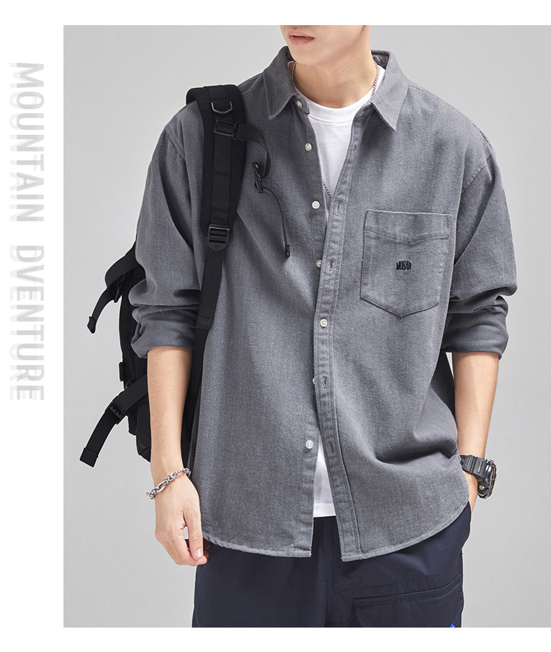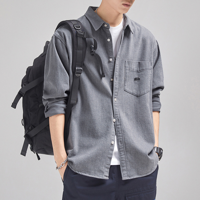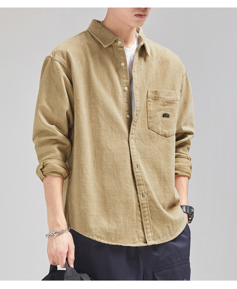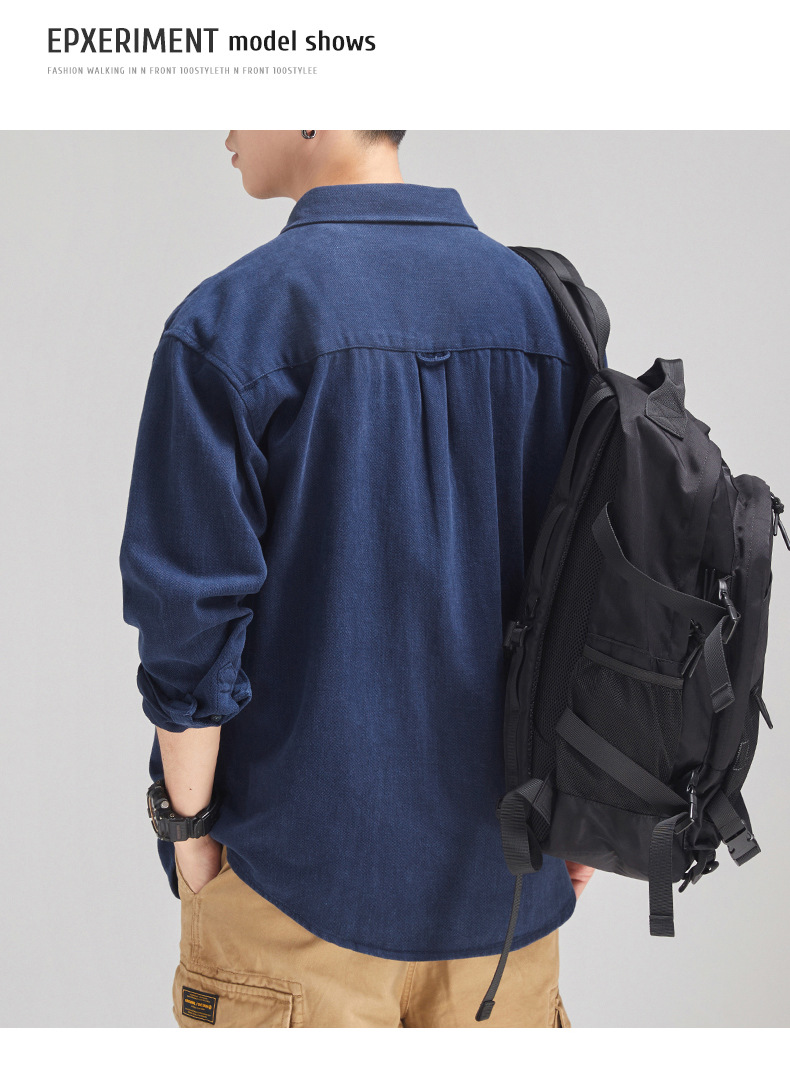 가을 겨울용 벨벳 안감 두꺼운 네이비 블루 아메리칸 레트로 셔츠 남성용 루즈핏 일본풍 워크웨어 스타일 캐주얼 셔츠 자켓스토어 가기