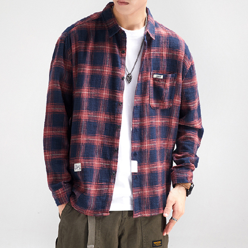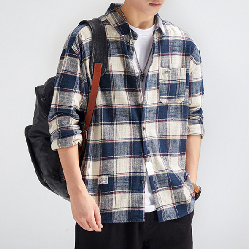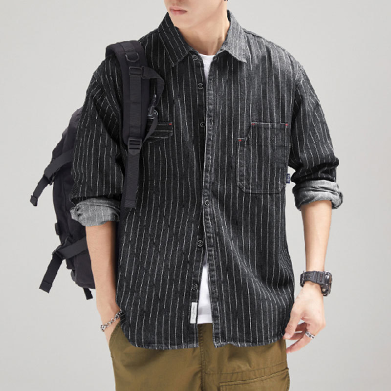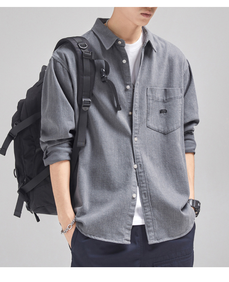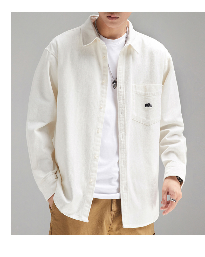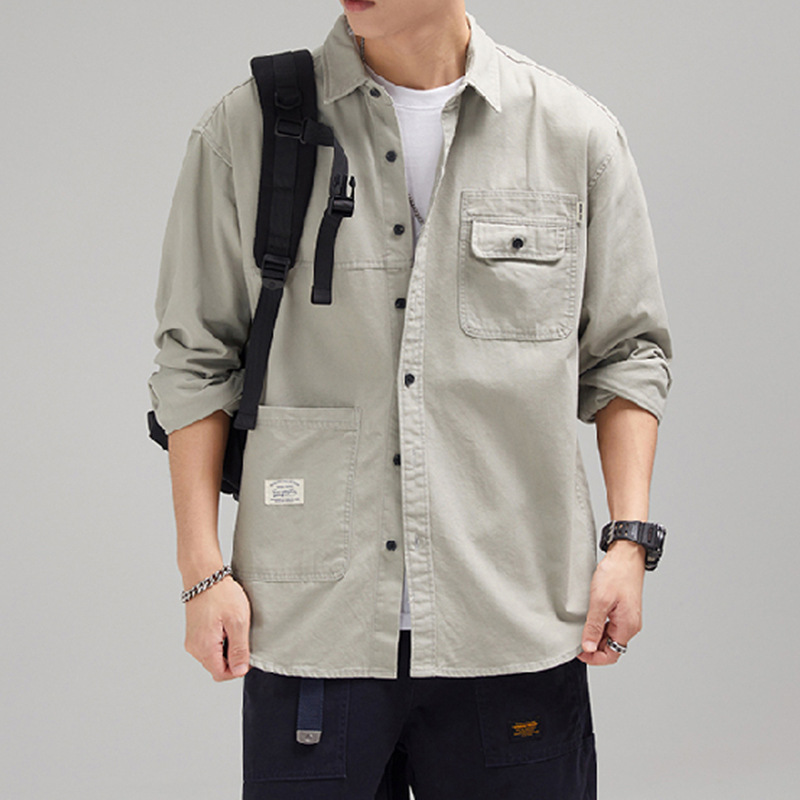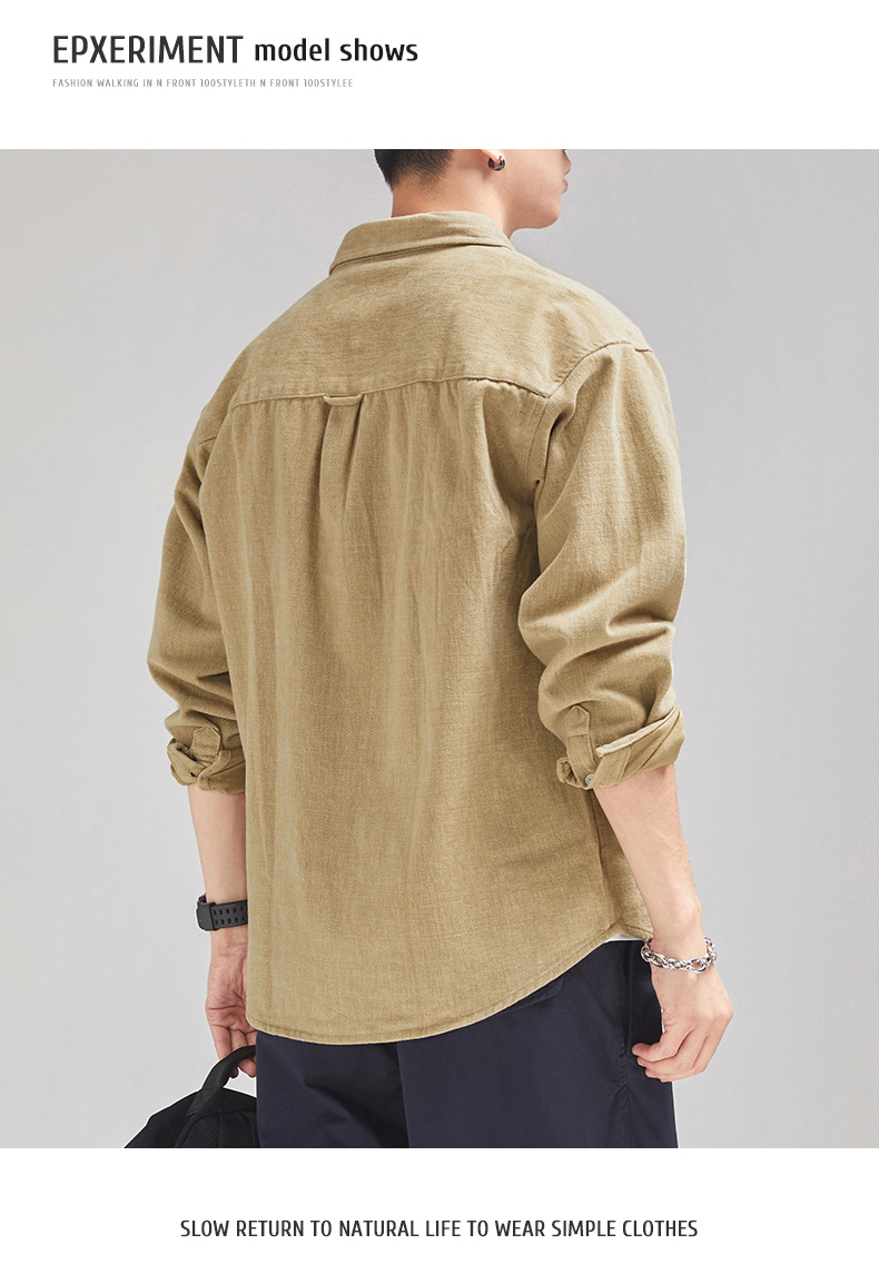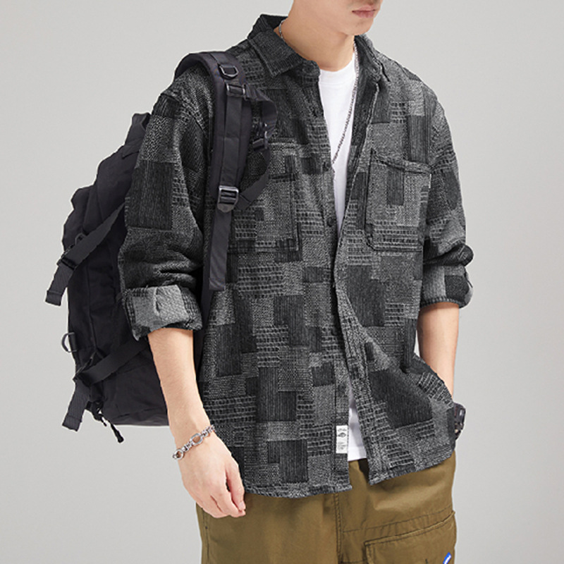 가을 겨울용 벨벳 안감 두꺼운 네이비 블루 아메리칸 레트로 셔츠 남성용 루즈핏 일본풍 워크웨어 스타일 캐주얼 셔츠 자켓스토어 가기