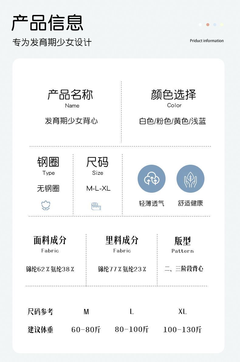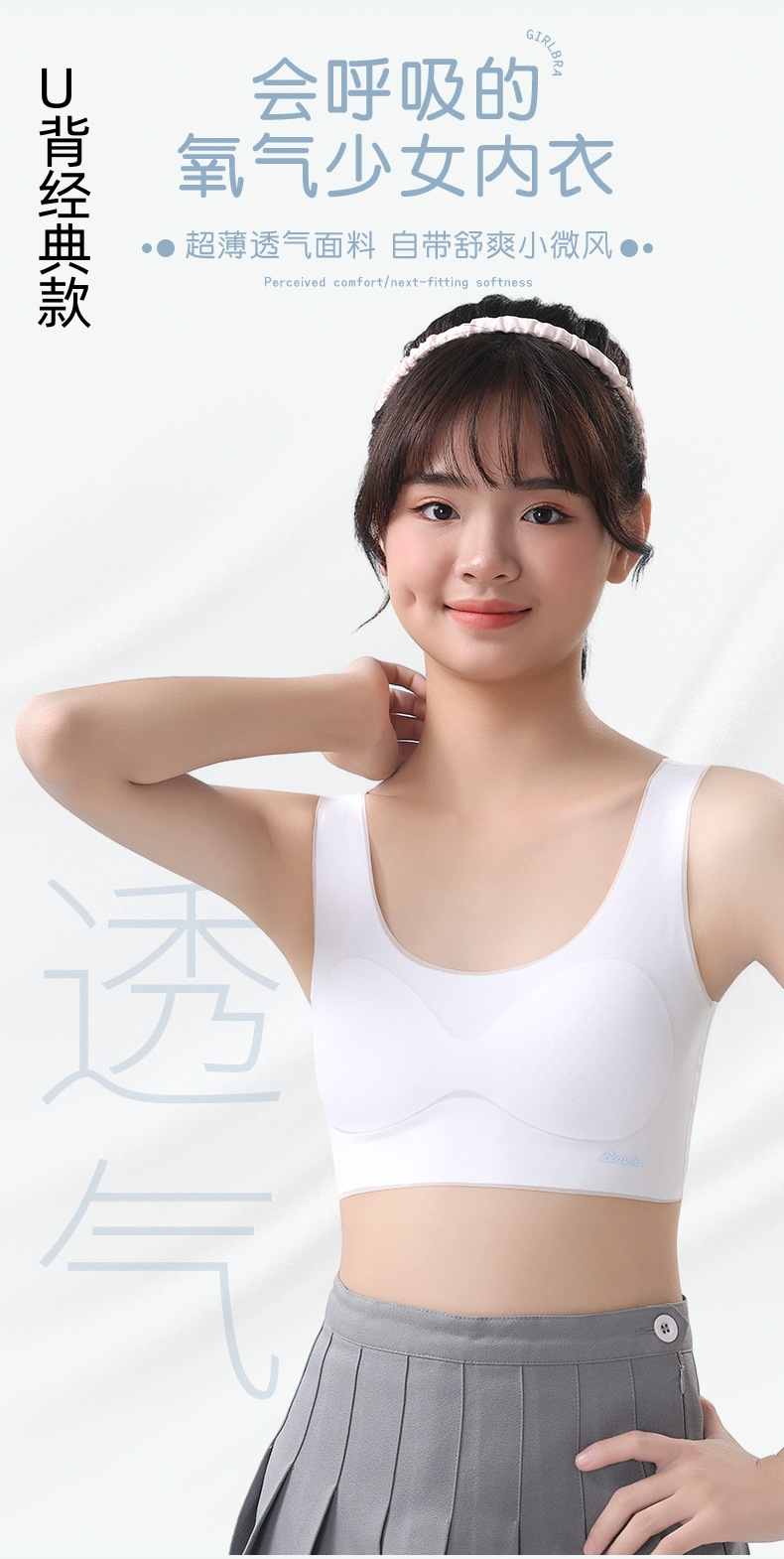 여아 브라, 여중생, 고등학생, 고정컵, 12-16세 아동 속옷, 발달기 조끼형 브라
