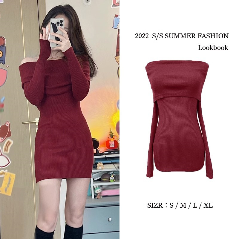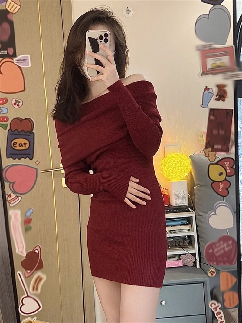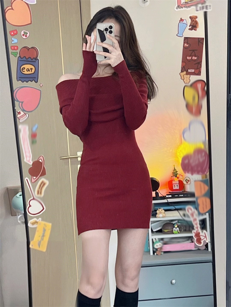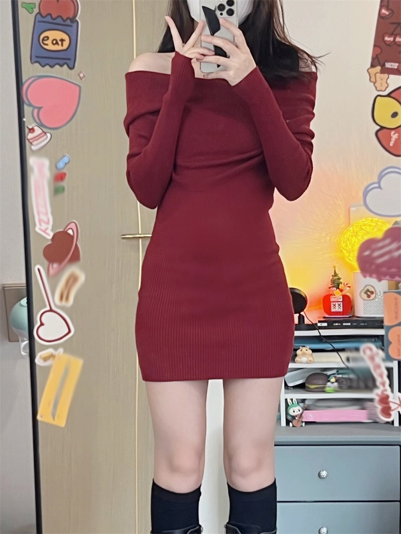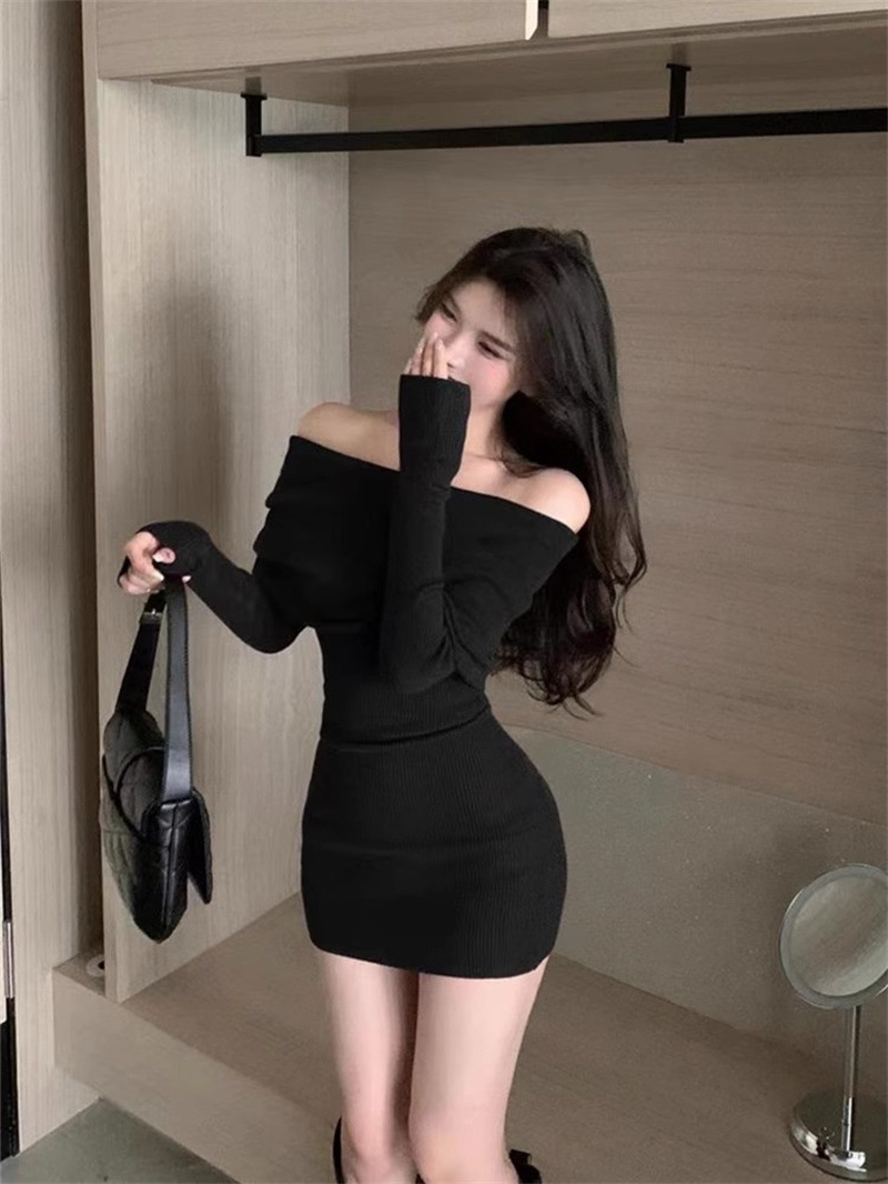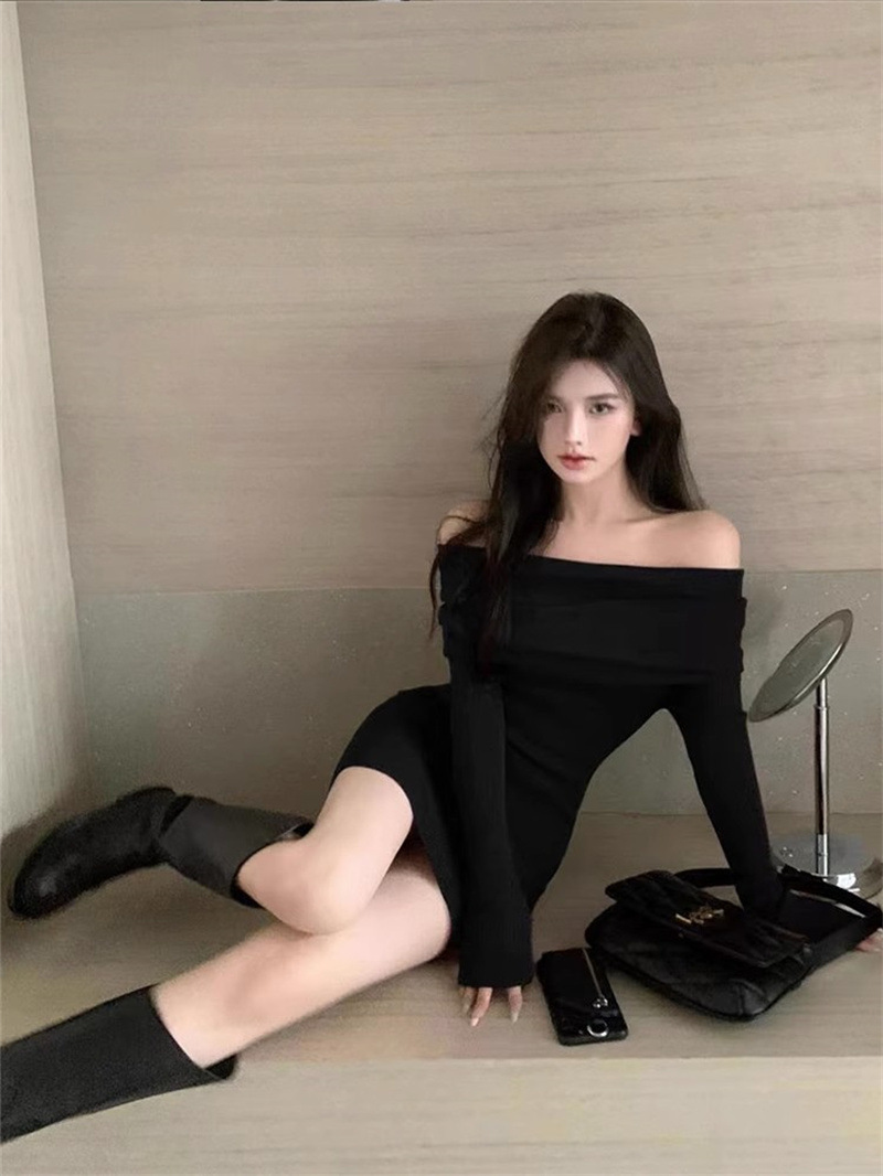 순수한 욕망 블랙 오프 숄더 섹시한 스파이스 걸스 긴팔 원피스 여성 가을과 겨울 슬림핏 힙합 원피스 트렌디스토어 가기
