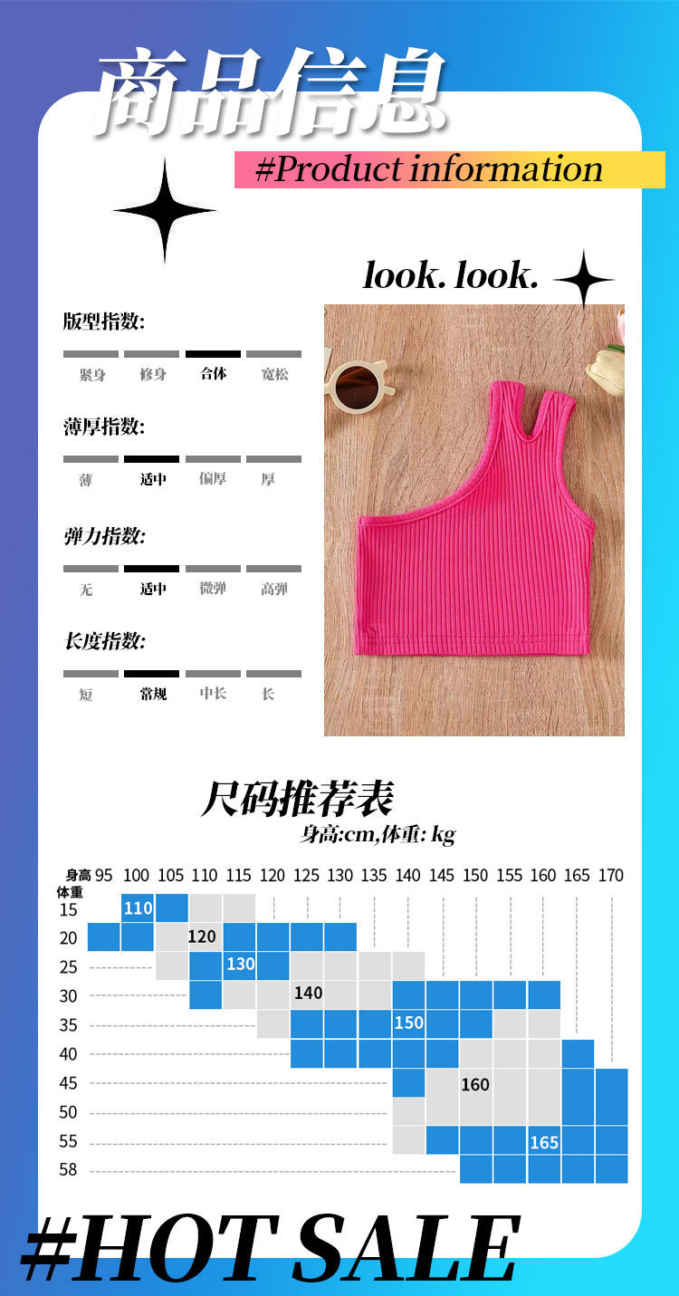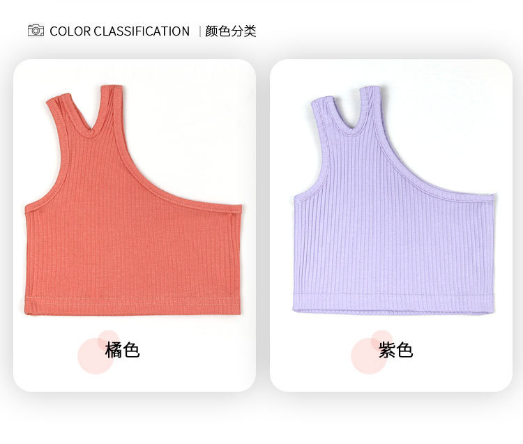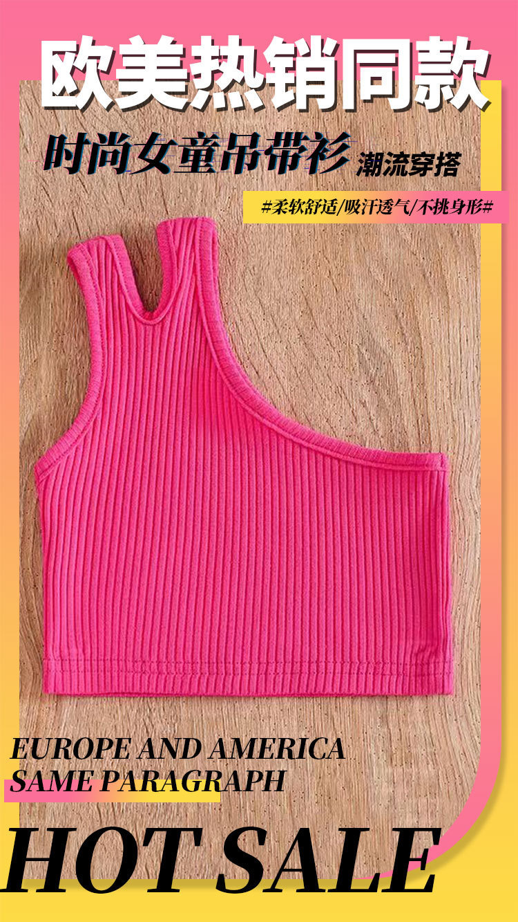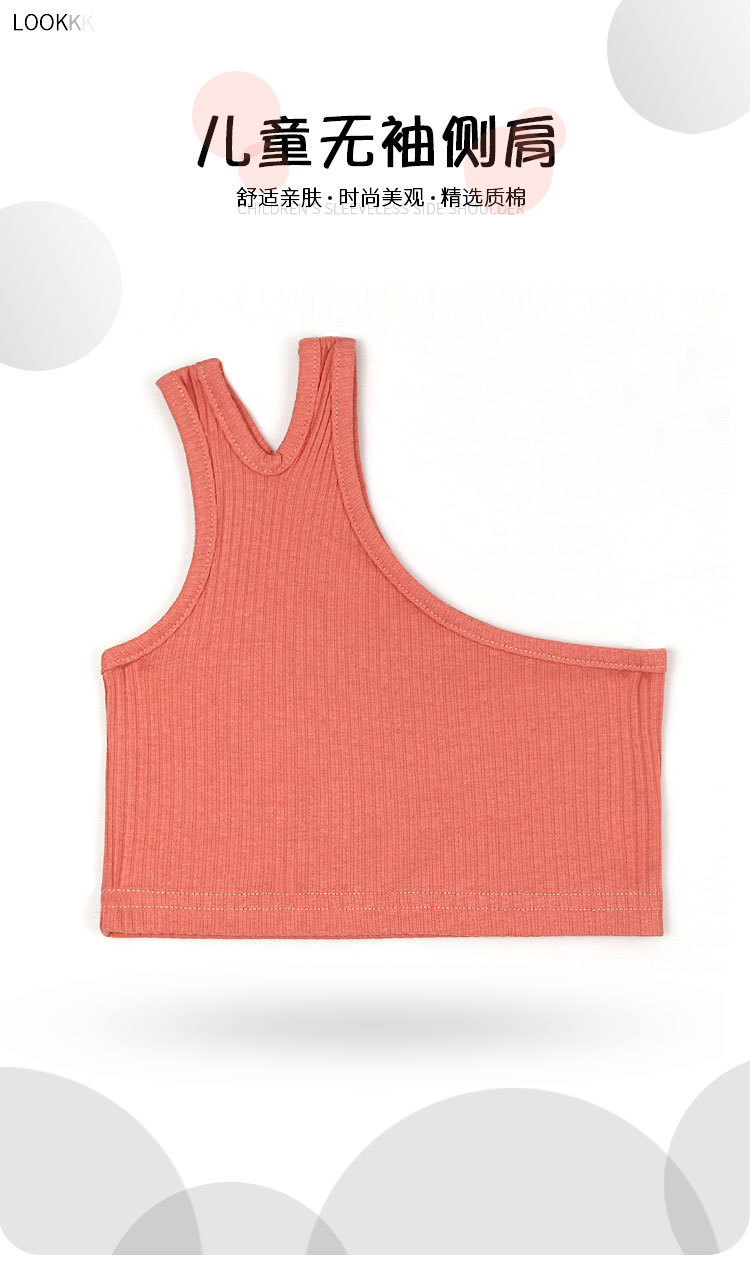 국경 간 아동복 소녀의 여름 조끼 2024 새로운 대외 무역 소녀 경사 어깨 불규칙한 스트랩 백탑 탑