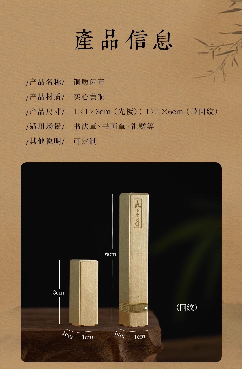 1×1×3 순황동 인장, 서예 및 그림용, 하드펜용, 소형 인장 원석, 선물용, 이름 각인, 도매