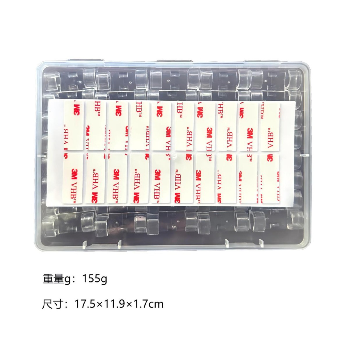 • 3M VHB 접착제가 포함된 중간 투명 상자 40개