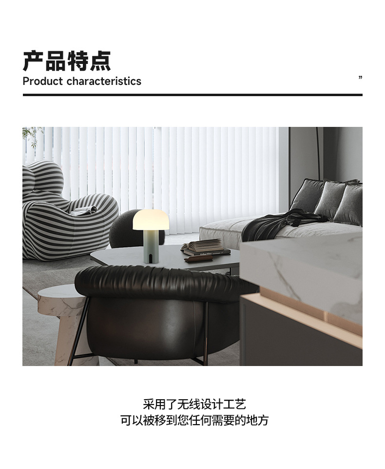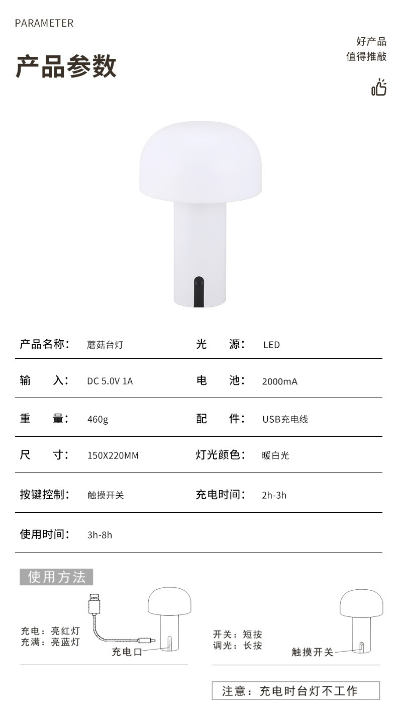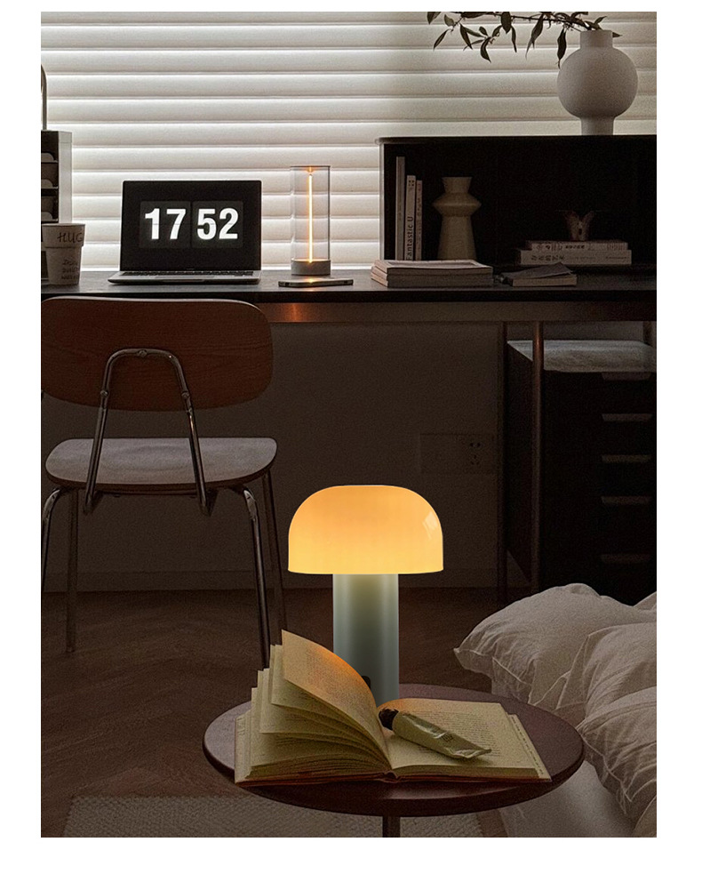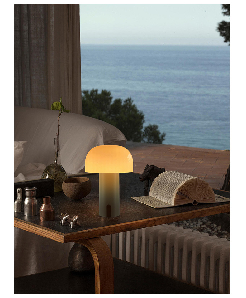 작은 버섯 북유럽 휴대용 테이블 램프 미국 장식 침대 옆 탁자 터치 무선 충전 대기 빛 야간 조명