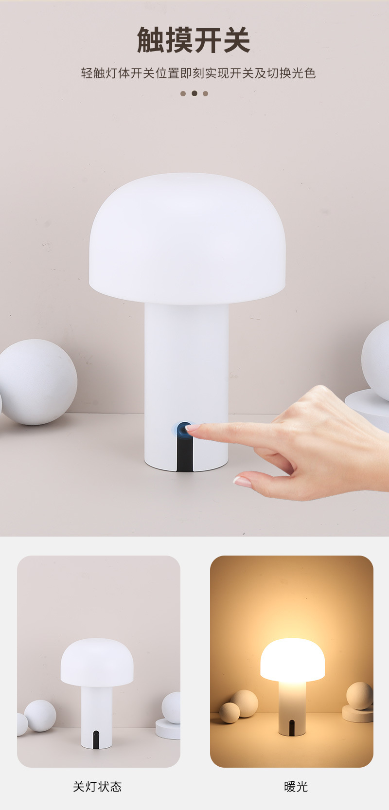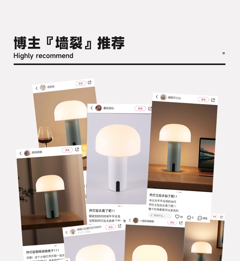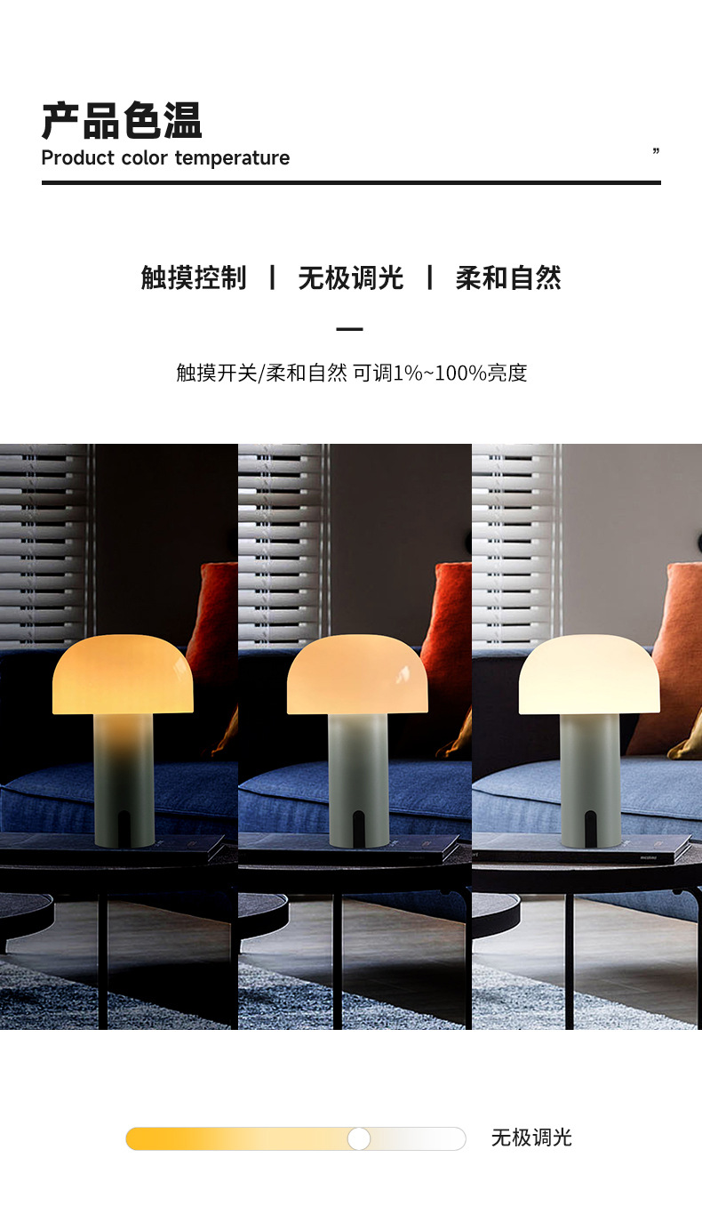 작은 버섯 북유럽 휴대용 테이블 램프 미국 장식 침대 옆 탁자 터치 무선 충전 대기 빛 야간 조명