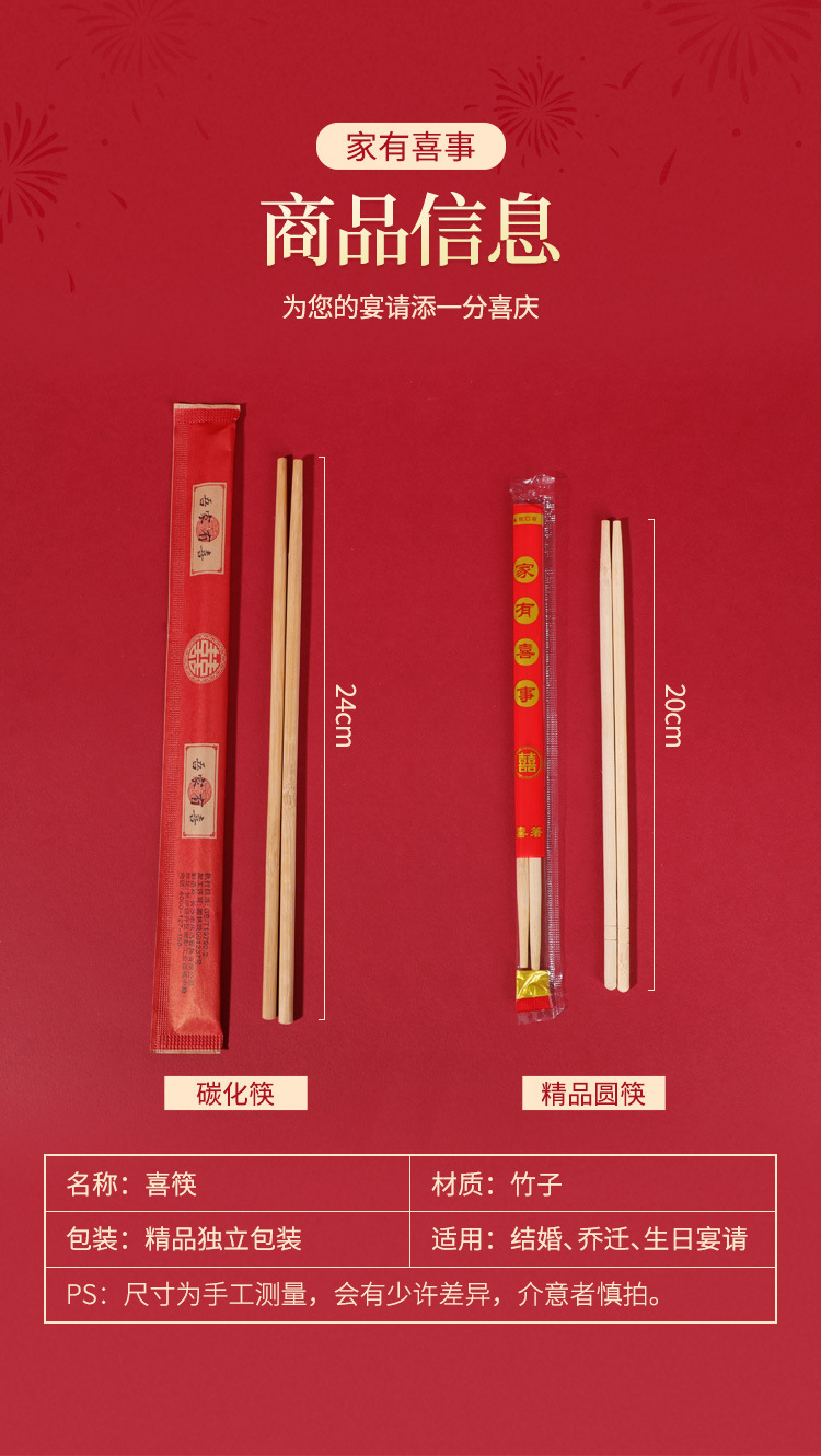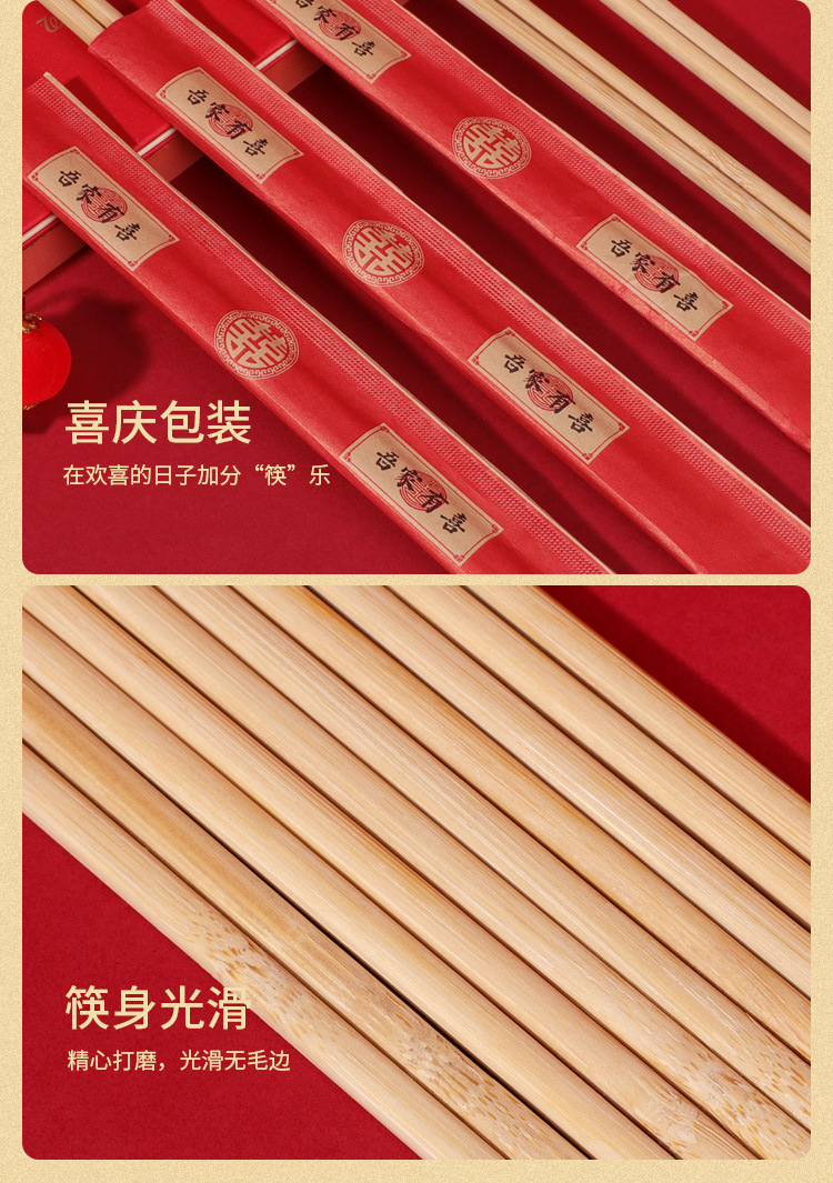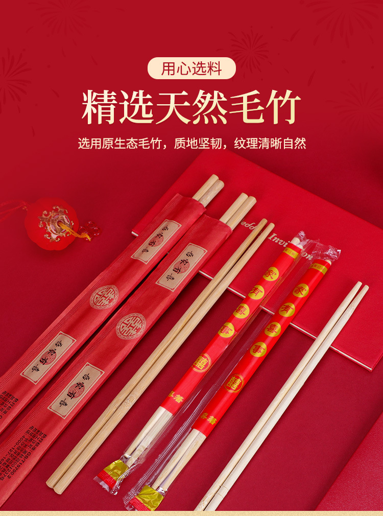 웨딩 일회용 젓가락 도매 웨딩 연회 빨간 캐릭터 연회 식기 용품 일회용 대나무 젓가락스토어 가기