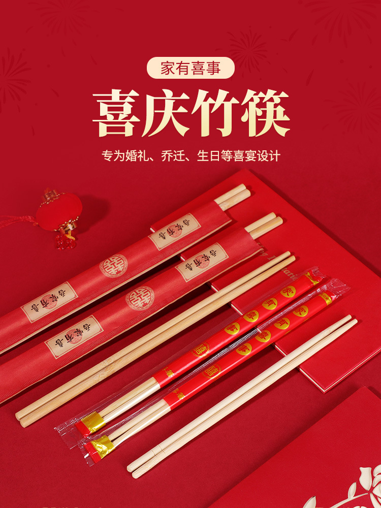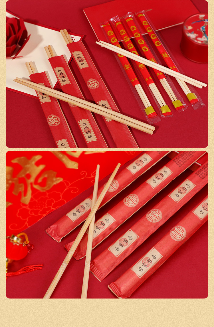 웨딩 일회용 젓가락 도매 웨딩 연회 빨간 캐릭터 연회 식기 용품 일회용 대나무 젓가락