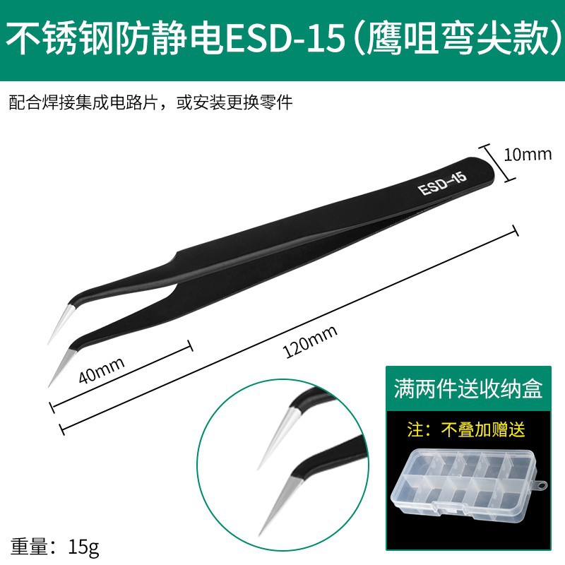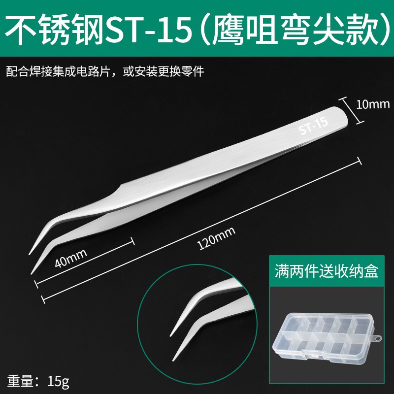 스테인레스 스틸 정전기 방지 핀셋 팔꿈치 얇은 직선 뾰족한 평평한 머리 새의 둥지 머리 따기 여드름 클립 특수 수리 도구