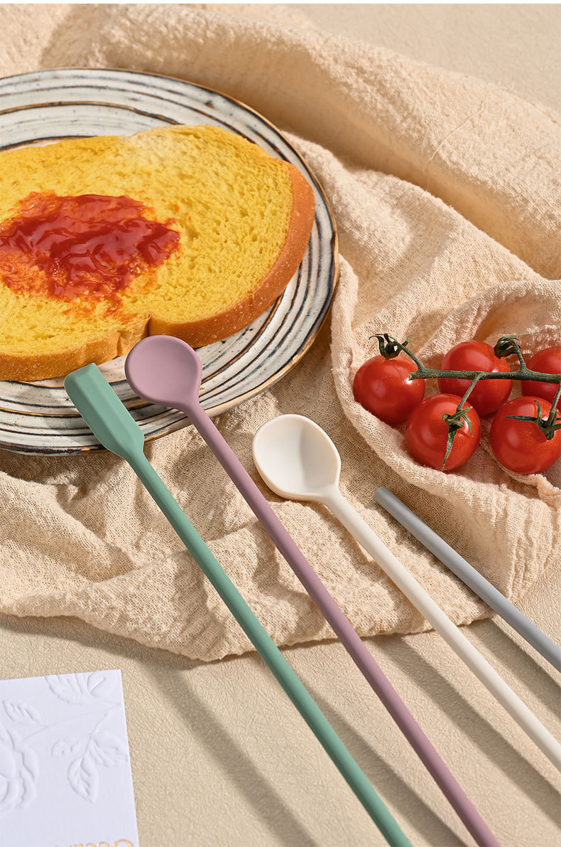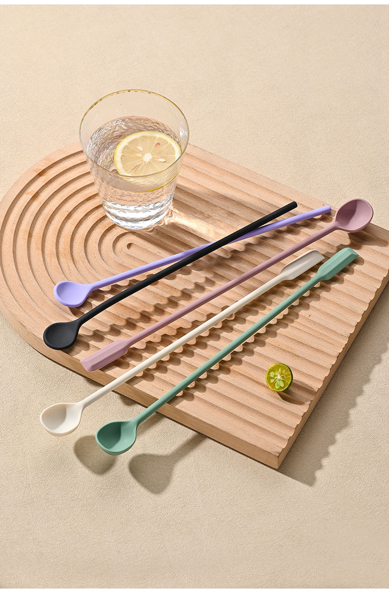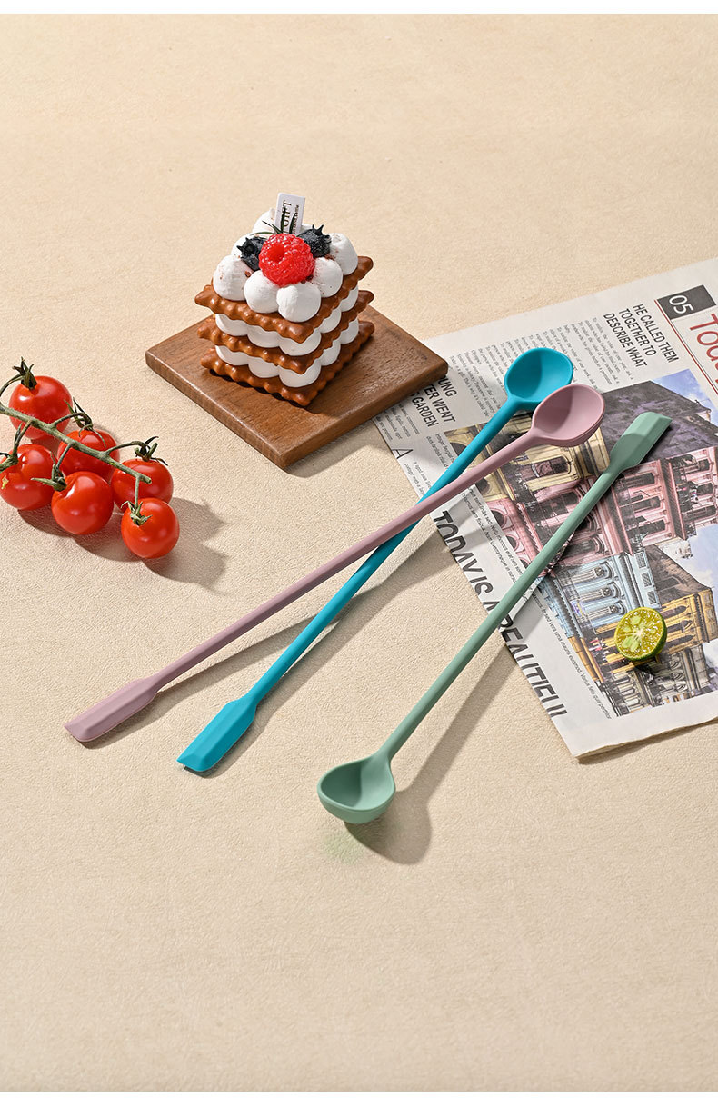 한국 식품 등급 실리콘 이중 주걱 혼합 숟가락 와인 혼합 스틱 우유 분말 꿀 고온 저항 긴 손잡이 혼합 스틱