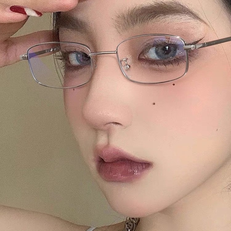 Siwen 금단 금 실크 안경 직사각형 좁은 프레임 일본 남성과 여성 일반 안경은 근시 안티 블루 라이트 조수를 장착 할 수 있습니다.스토어 가기