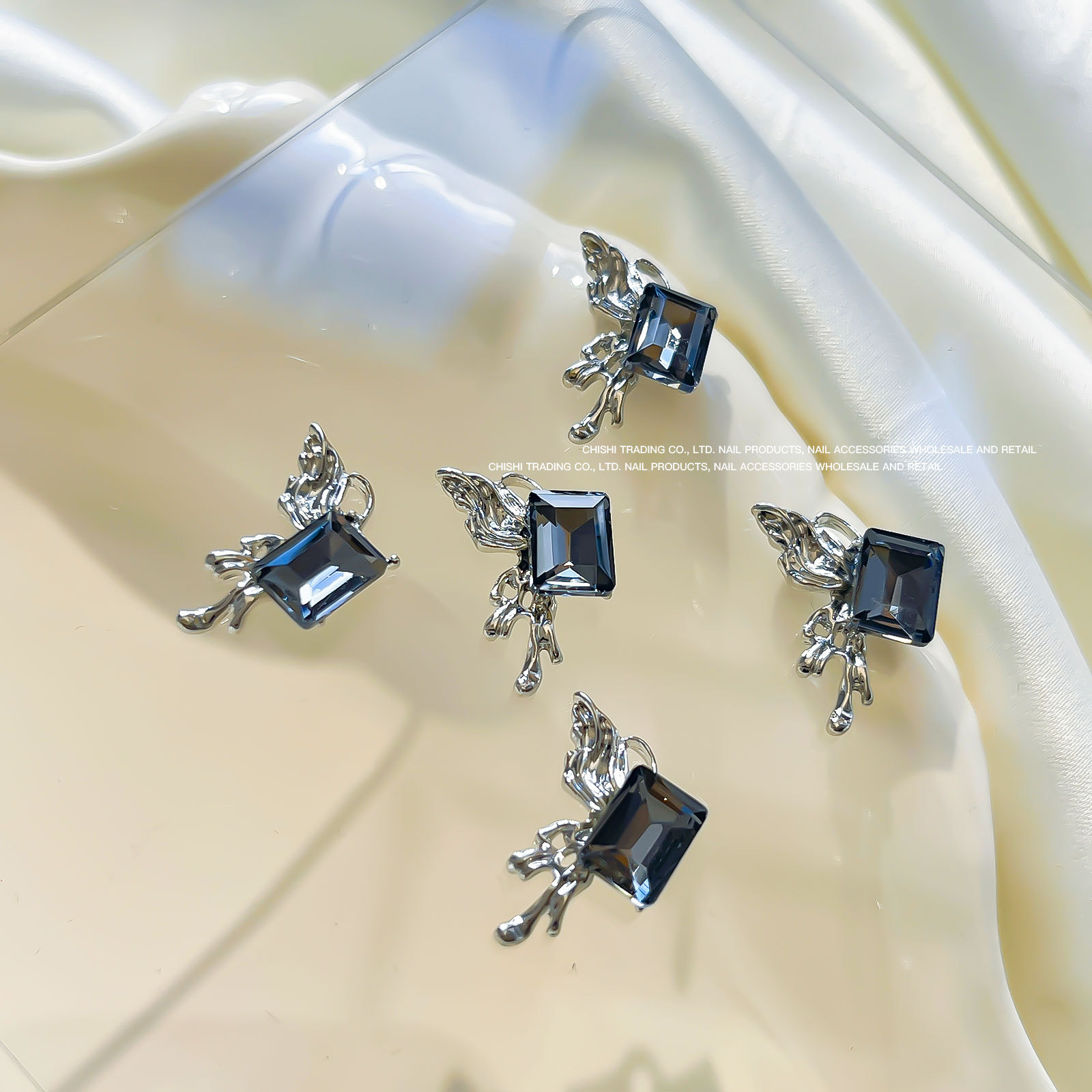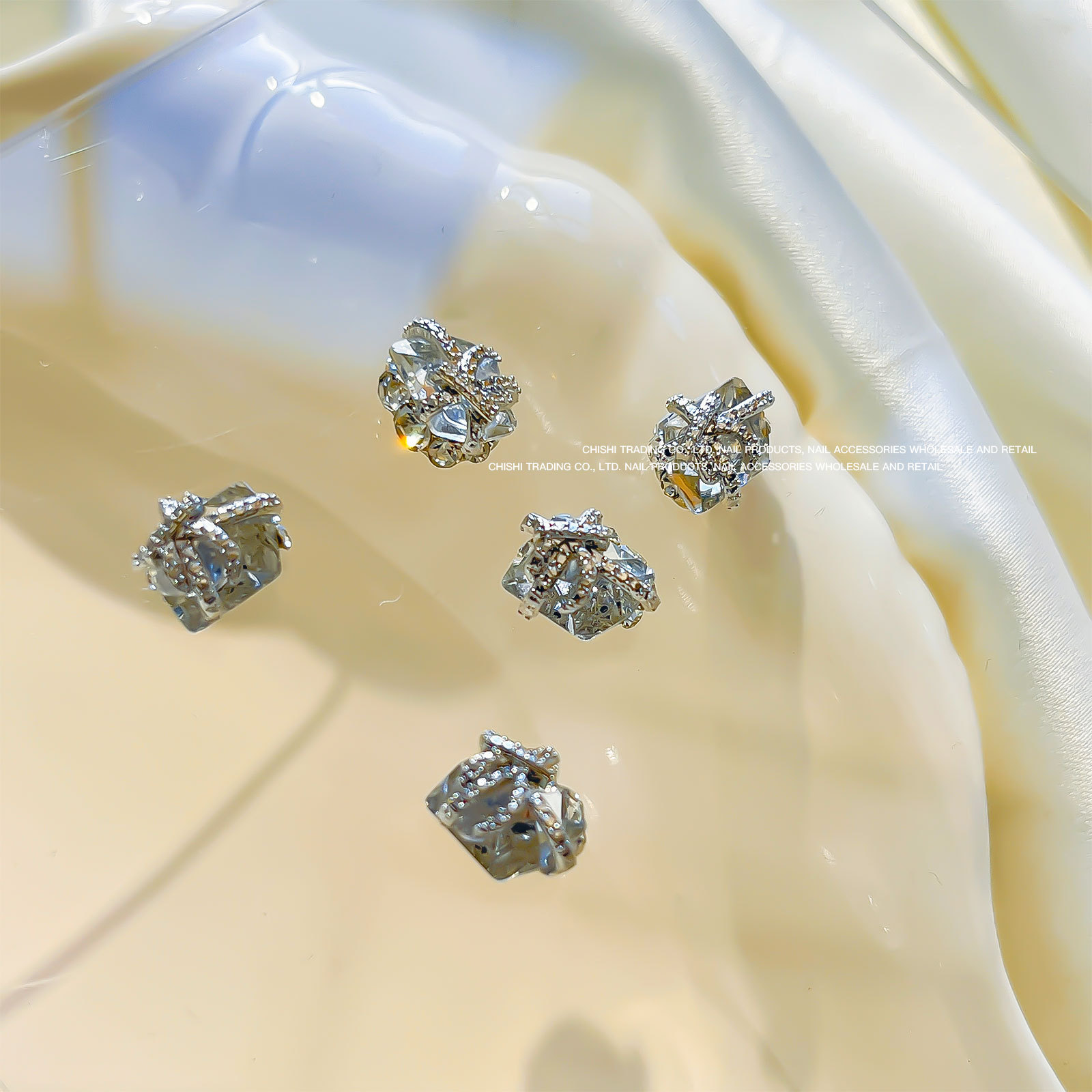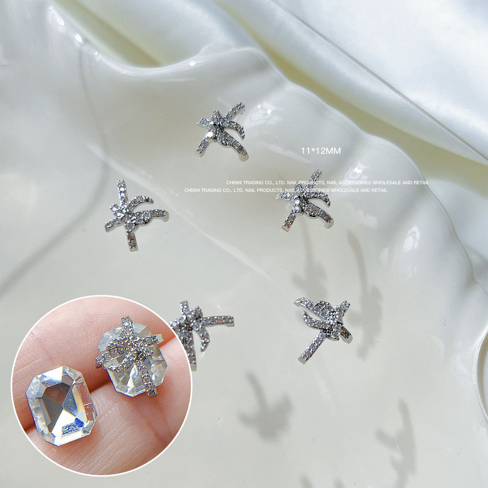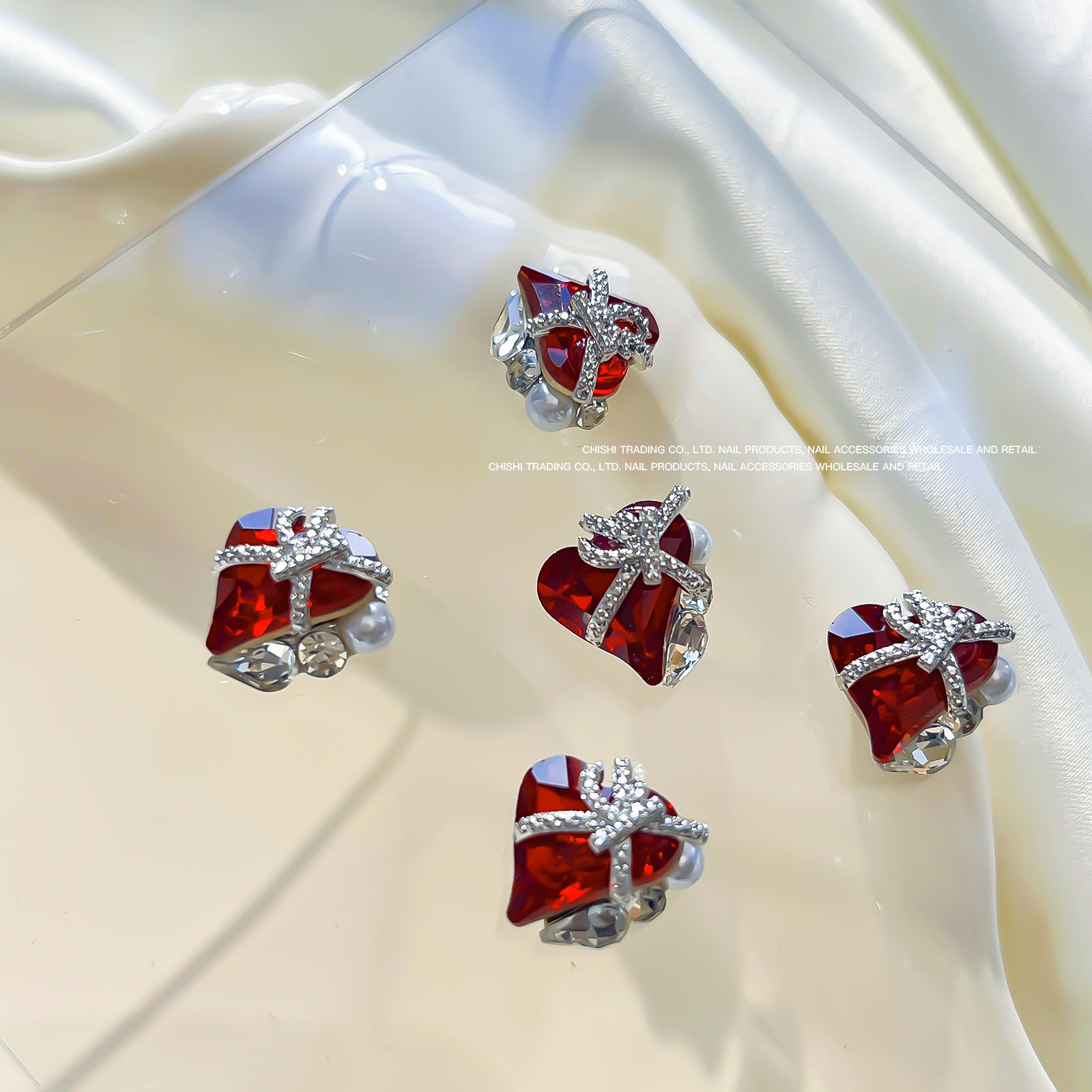 붕대 선물 클립 다이아몬드 네일 보석 새해 선물 상자 비뚤어진 심장 긴 직각 나비 다이아몬드 네일 장식 도매