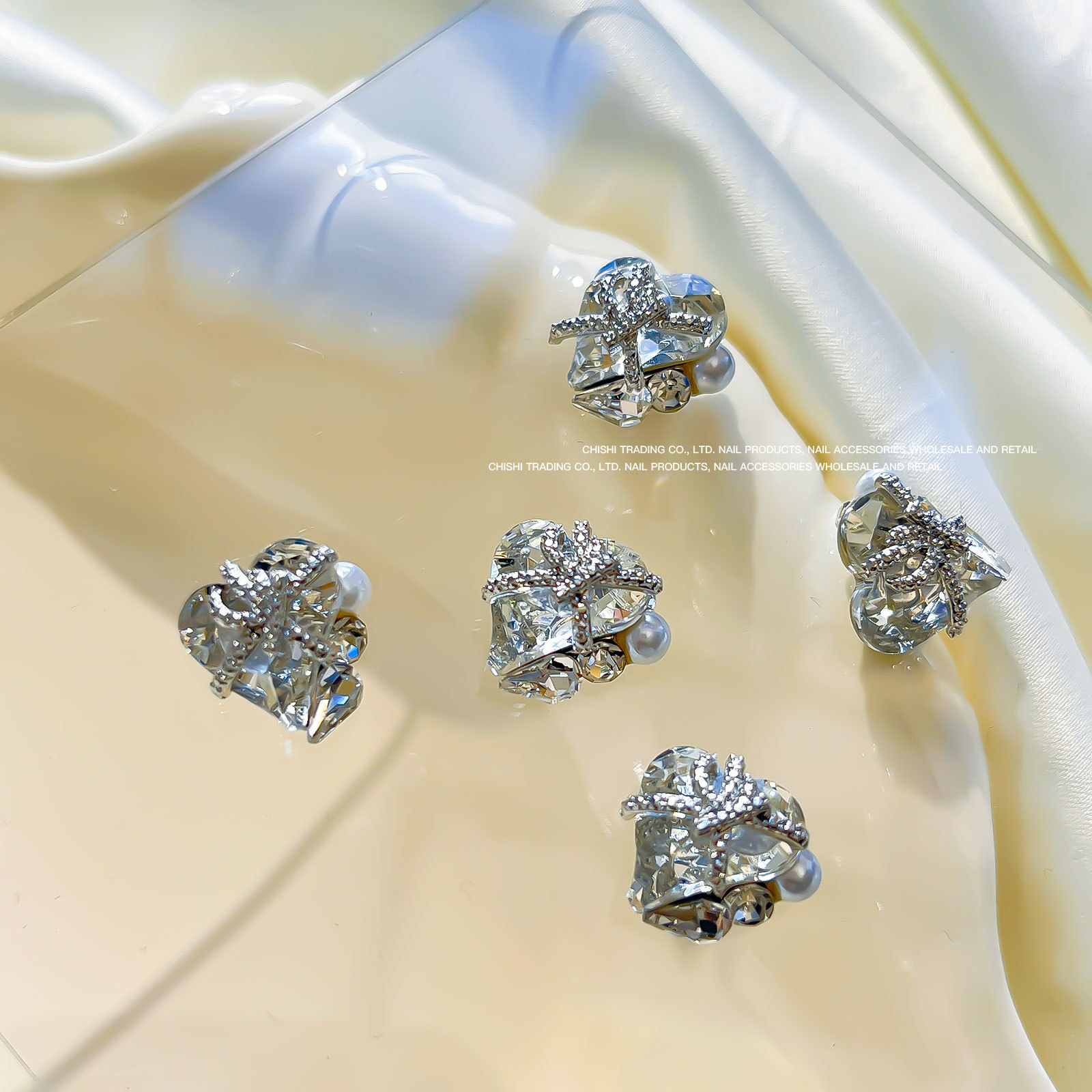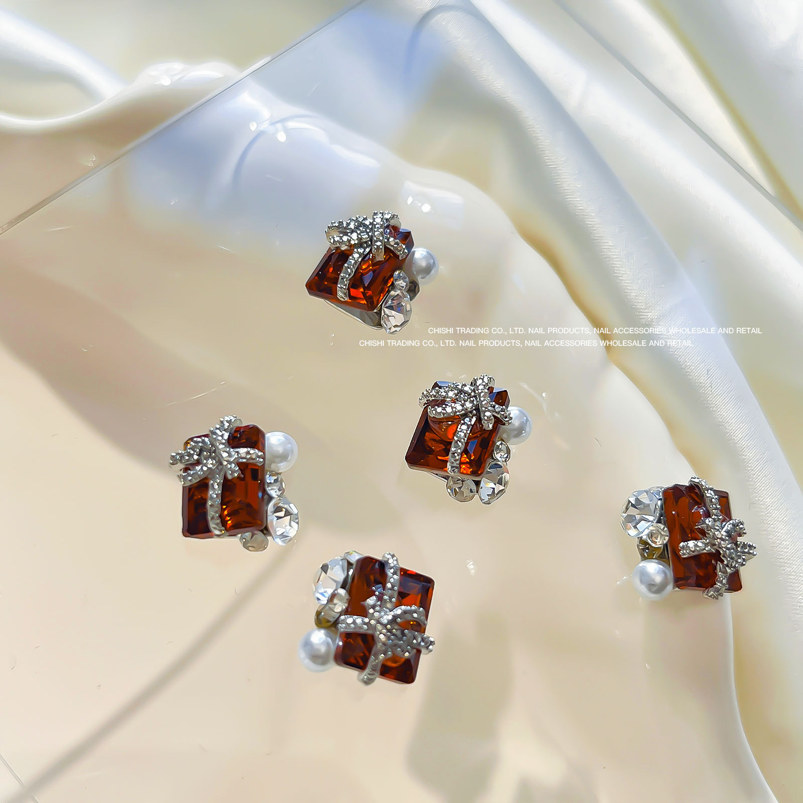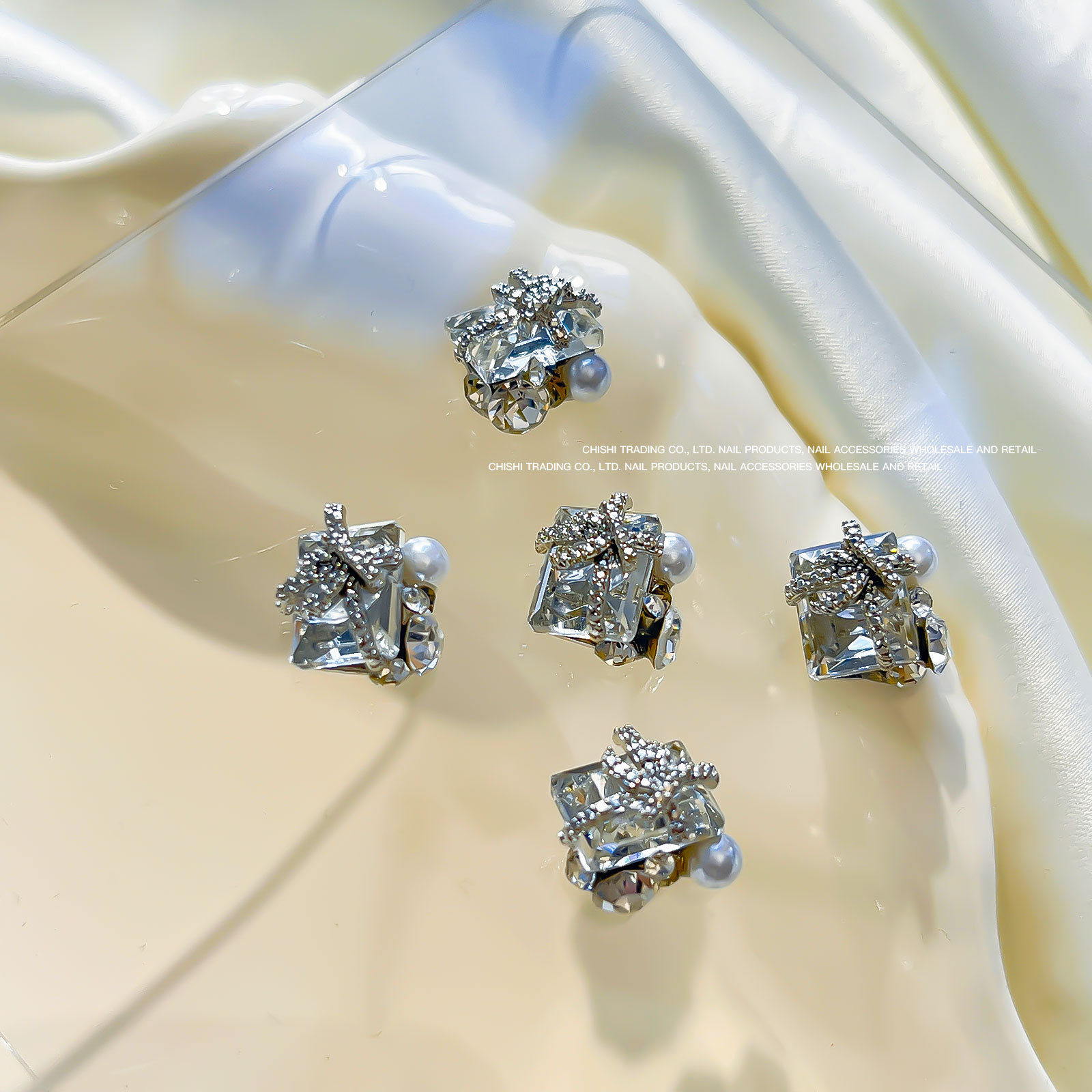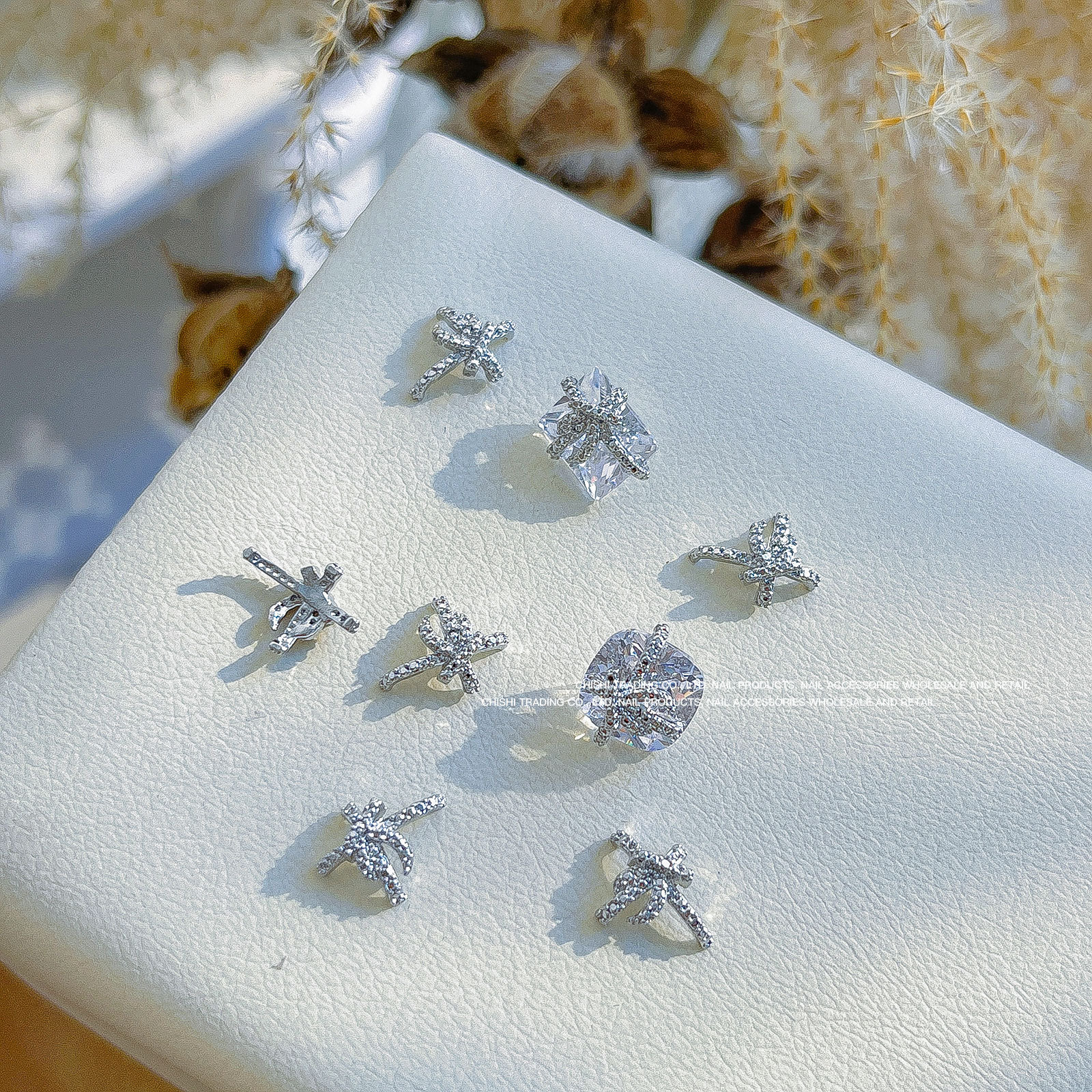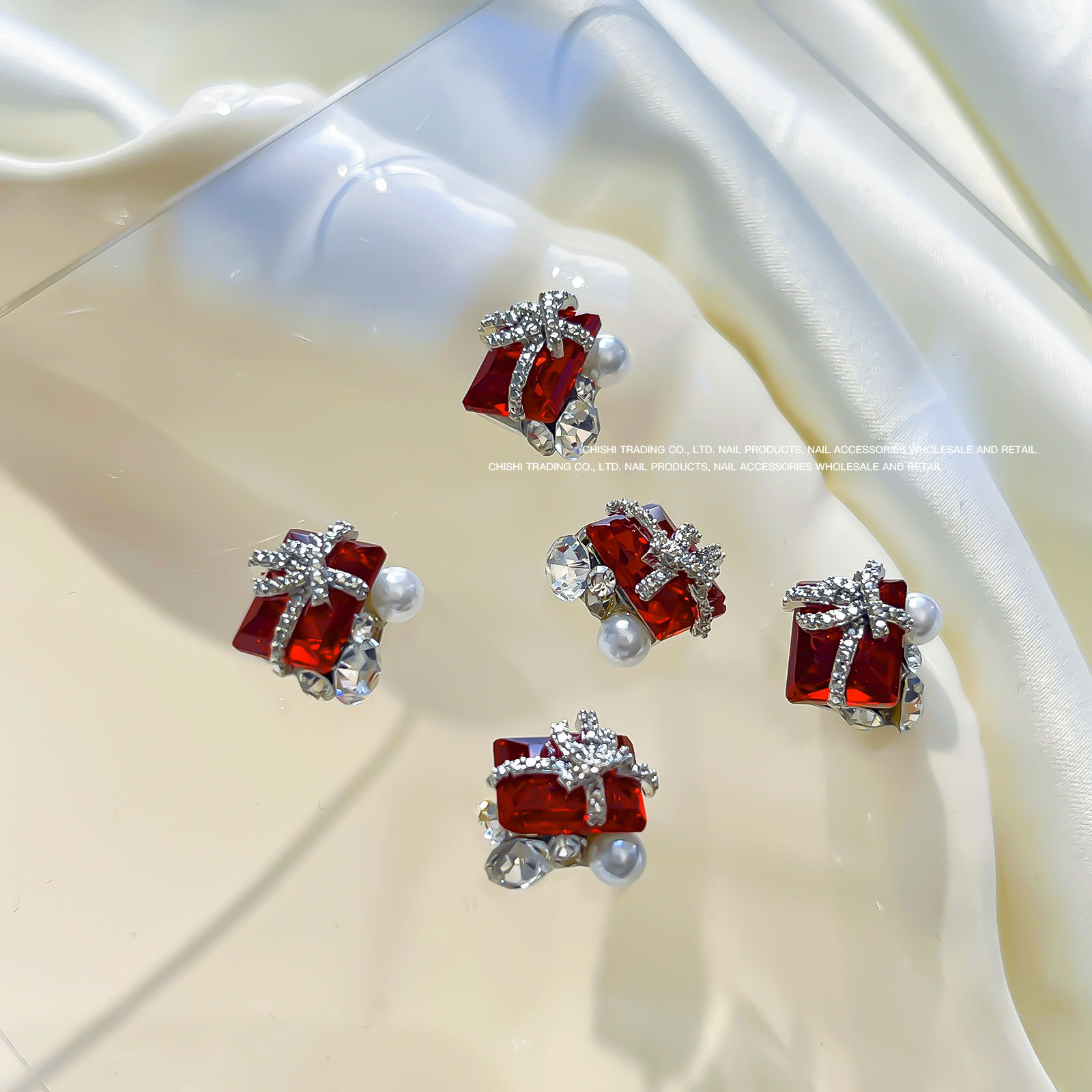 붕대 선물 클립 다이아몬드 네일 보석 새해 선물 상자 비뚤어진 심장 긴 직각 나비 다이아몬드 네일 장식 도매