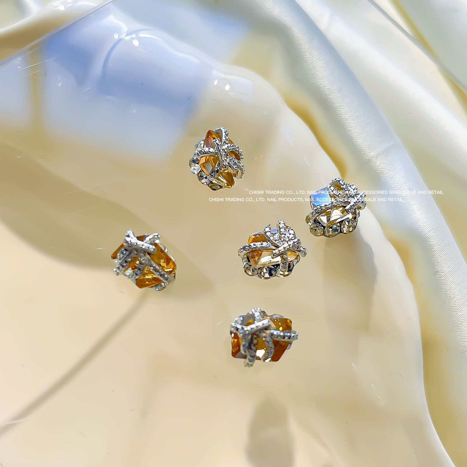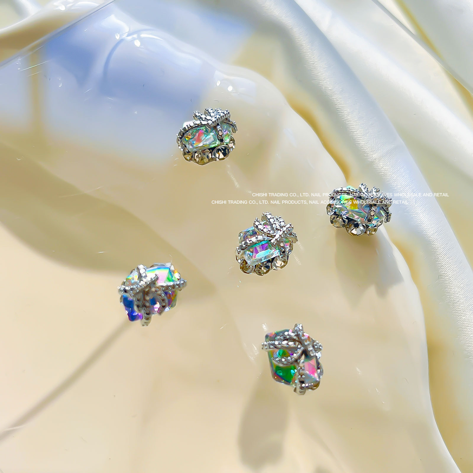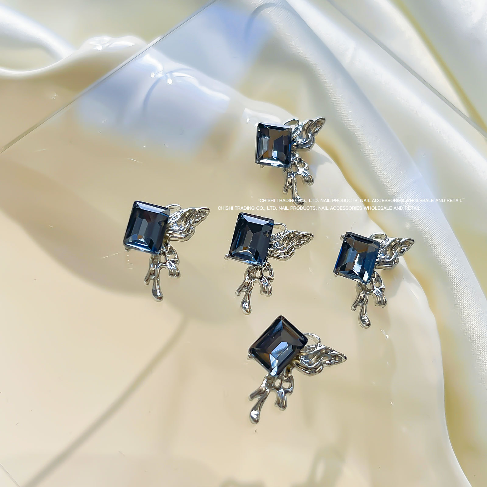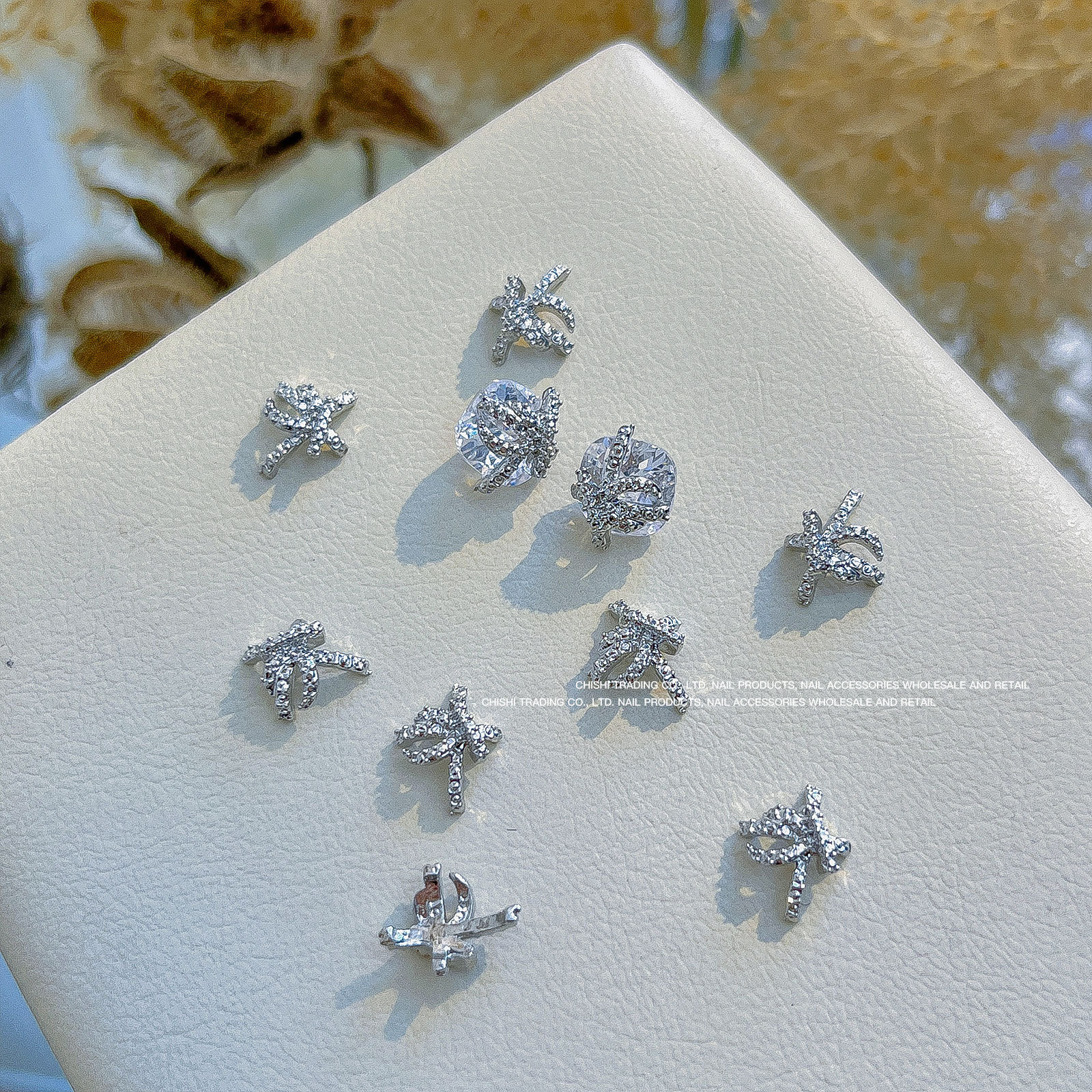 붕대 선물 클립 다이아몬드 네일 보석 새해 선물 상자 비뚤어진 심장 긴 직각 나비 다이아몬드 네일 장식 도매