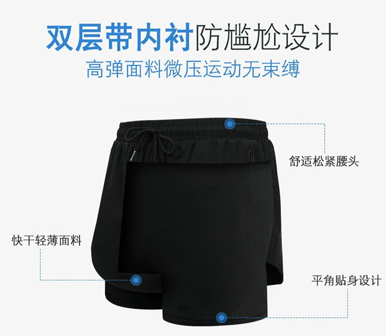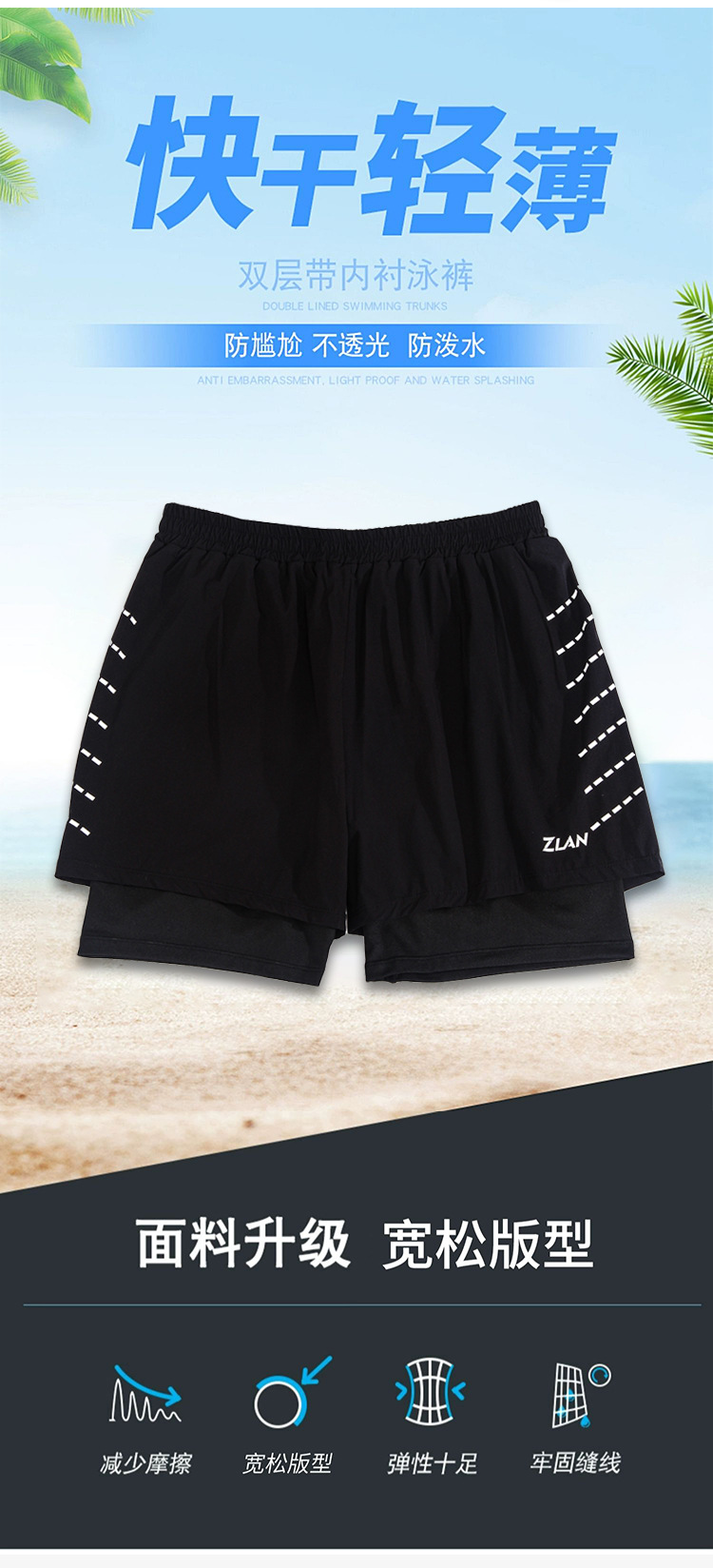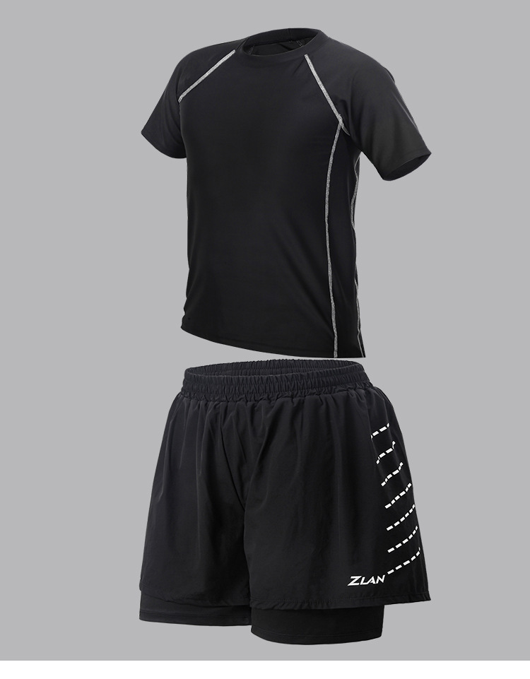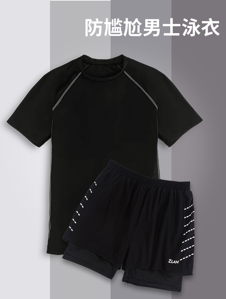 • 6003 검은 반팔 상단 1010 더블 레이어 수영 트렁크