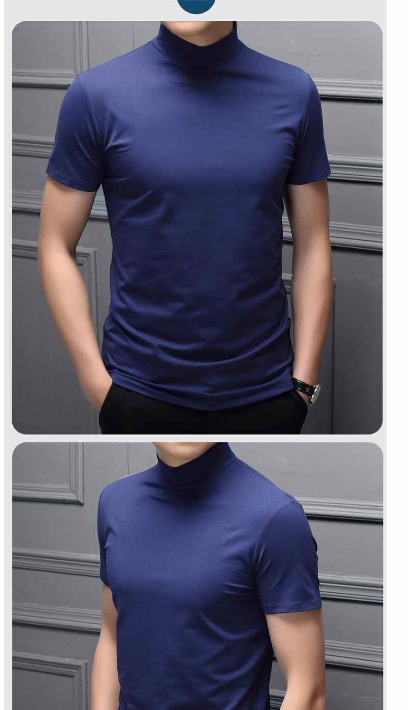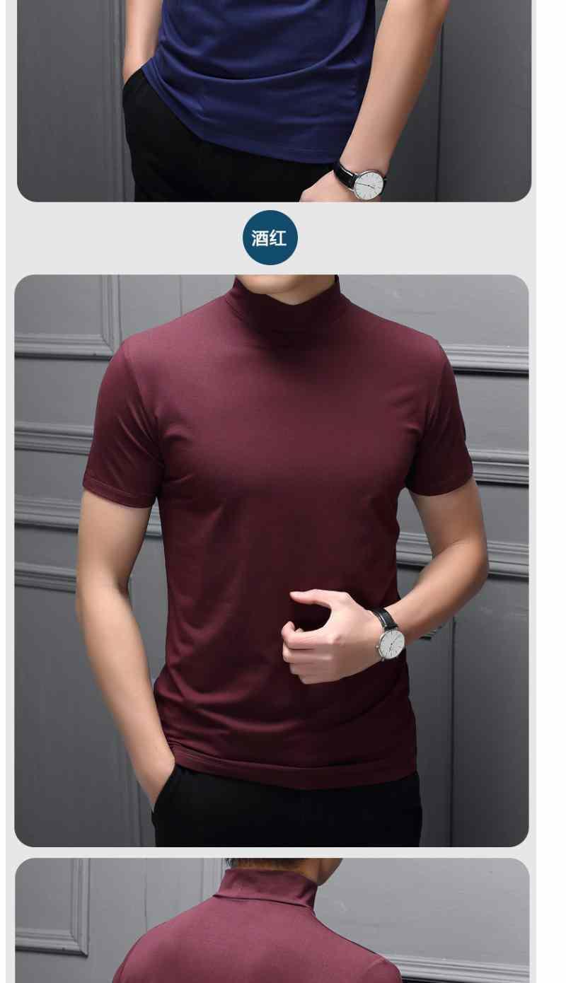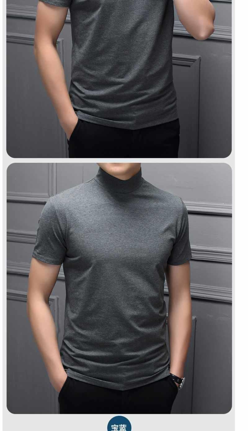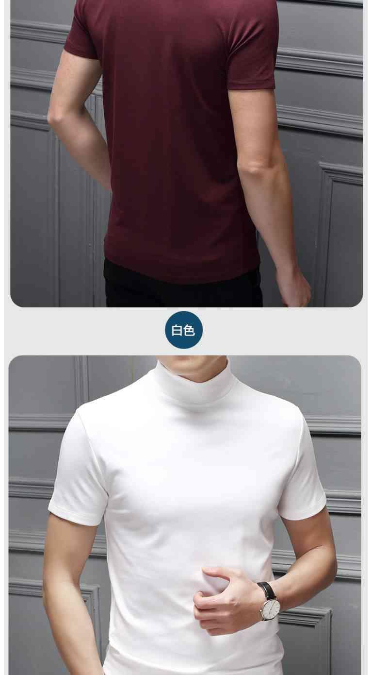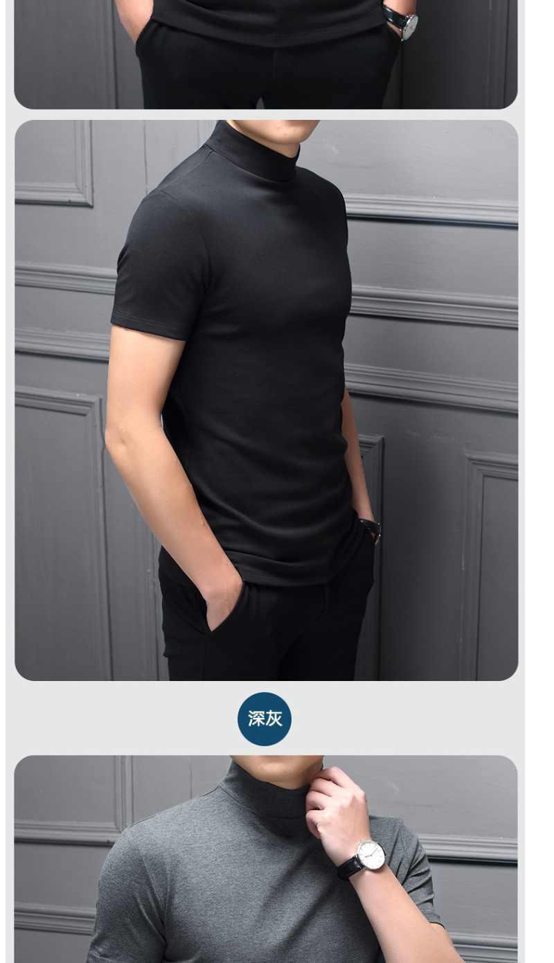 터틀넥 티셔츠 남성 여름 하프 터틀넥 반소매 슬림 티셔츠 남성용 단색 칼라 패션 바닥 셔츠스토어 가기