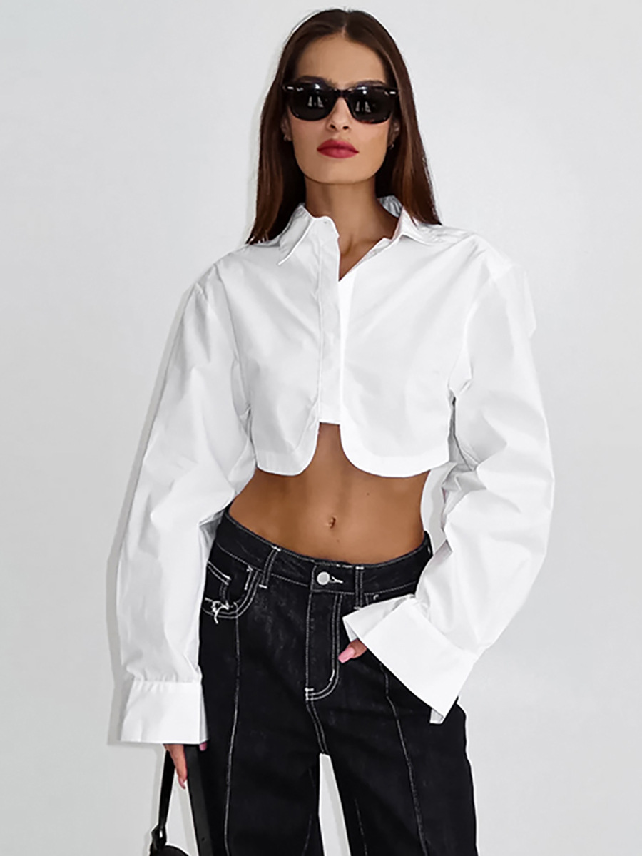 2024 봄 프랑스 스타일 통근 간단한 흰색 셔츠 여자 올매치 크롭 코튼 여자 셔츠 전문 탑