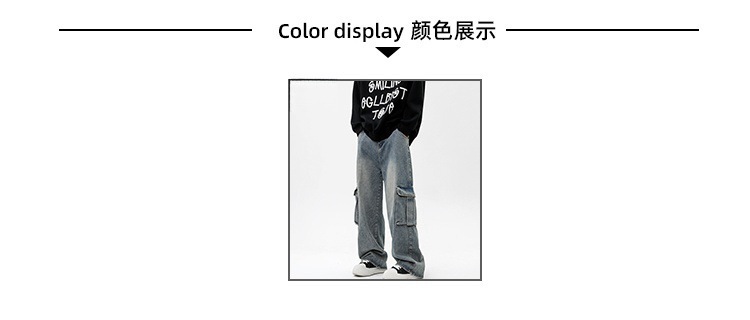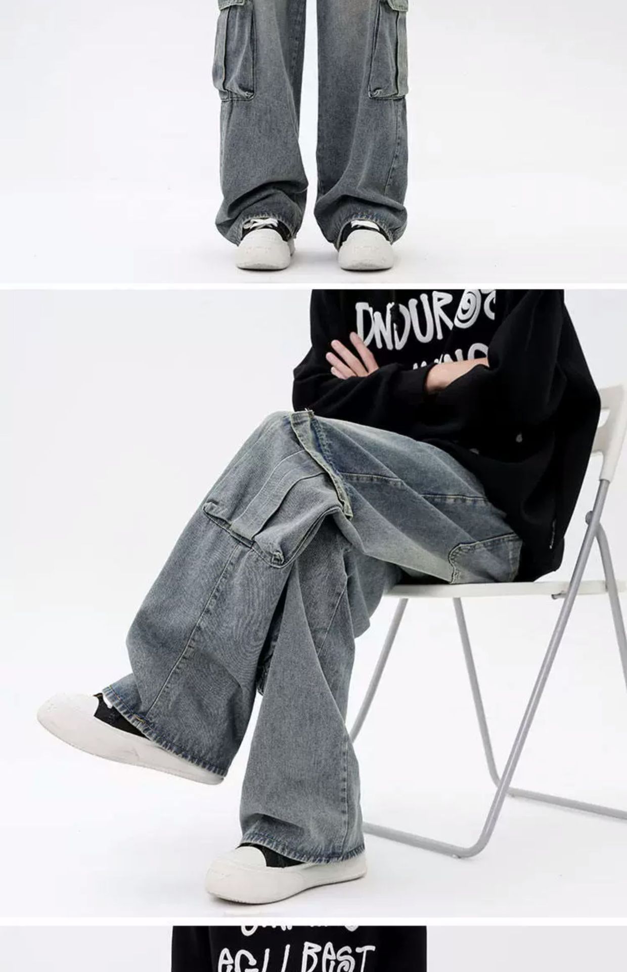 미국 스타일의 작업복 복고풍 청바지 남성용 2023 새로운 가을과 겨울 느슨한 스트레이트 와이드 레그 작업복 바지스토어 가기