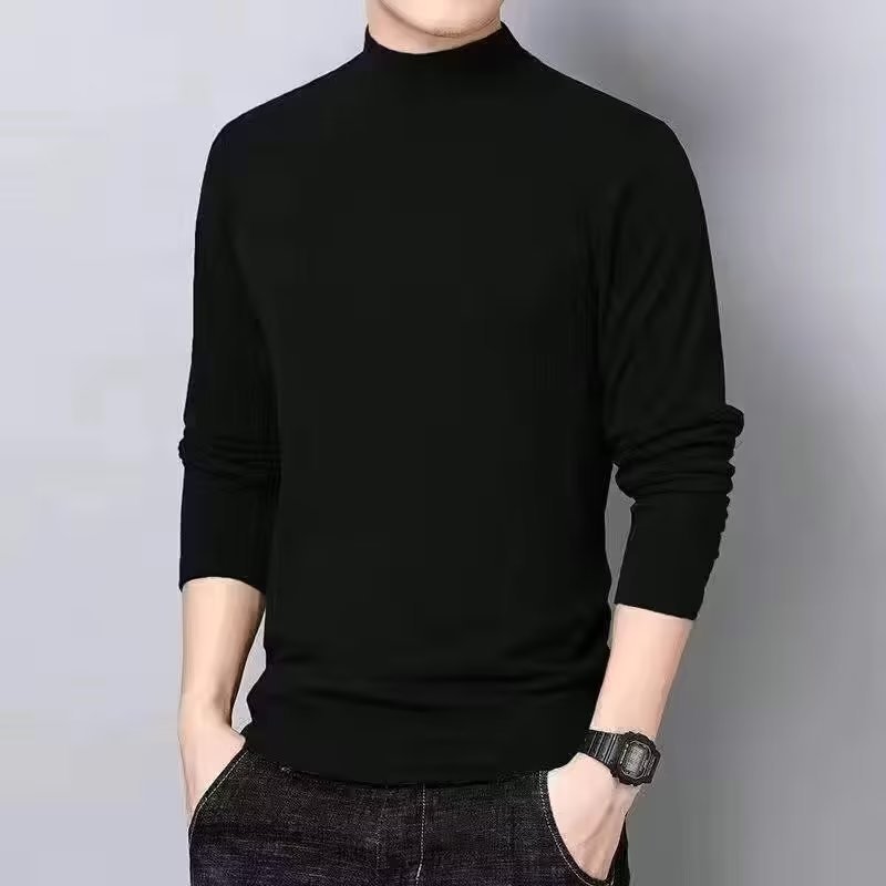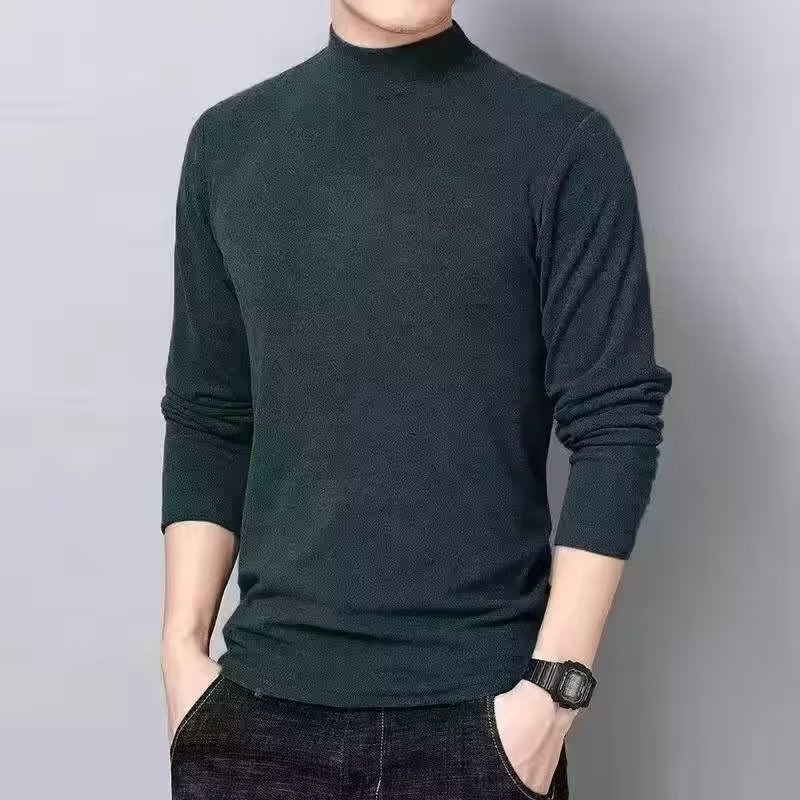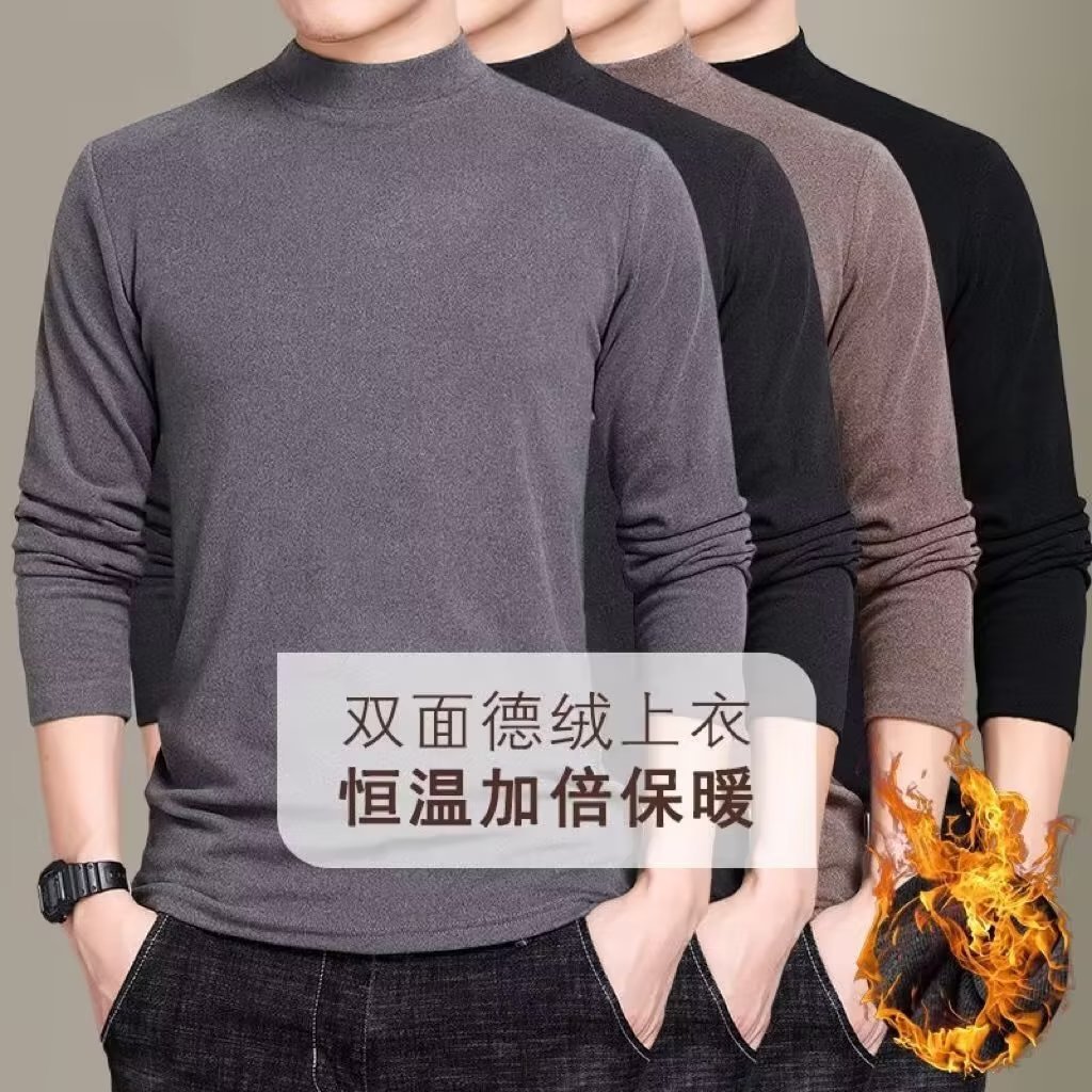 공장 도매 양면 벨벳 하프 터틀넥 긴팔 티셔츠 남성용 봄과 가을 기모 따뜻한 스웨터 바닥 셔츠 내복스토어 가기