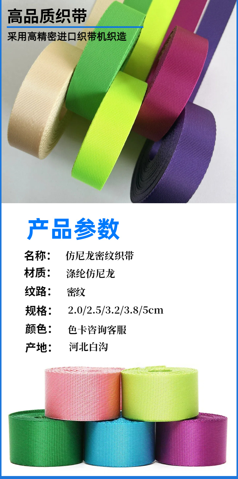 모방 나일론 조밀 한 직조 웨빙 제조 업체 미국 곡물 피트 벨트 1cm 배낭 어깨 스트랩 폴리 프로필렌 일반 직조 테두리 액세서리
