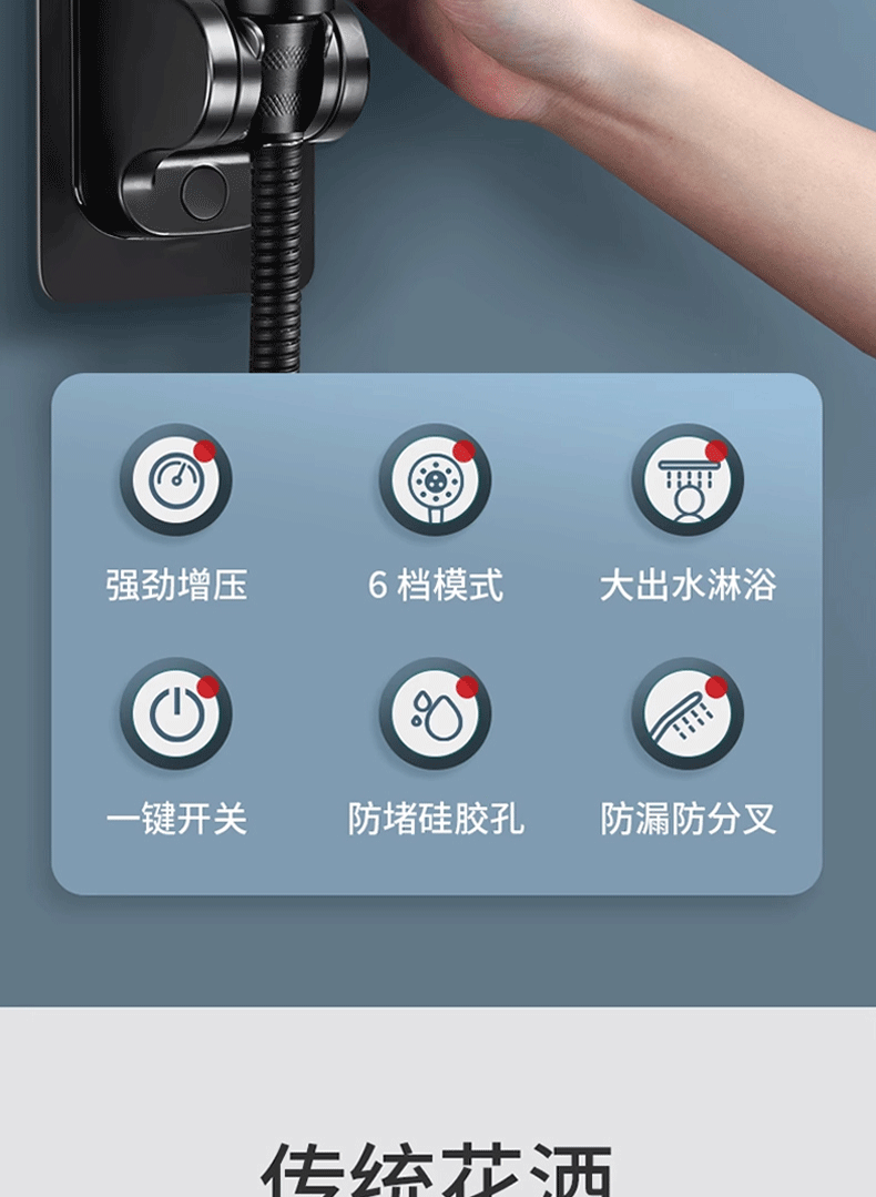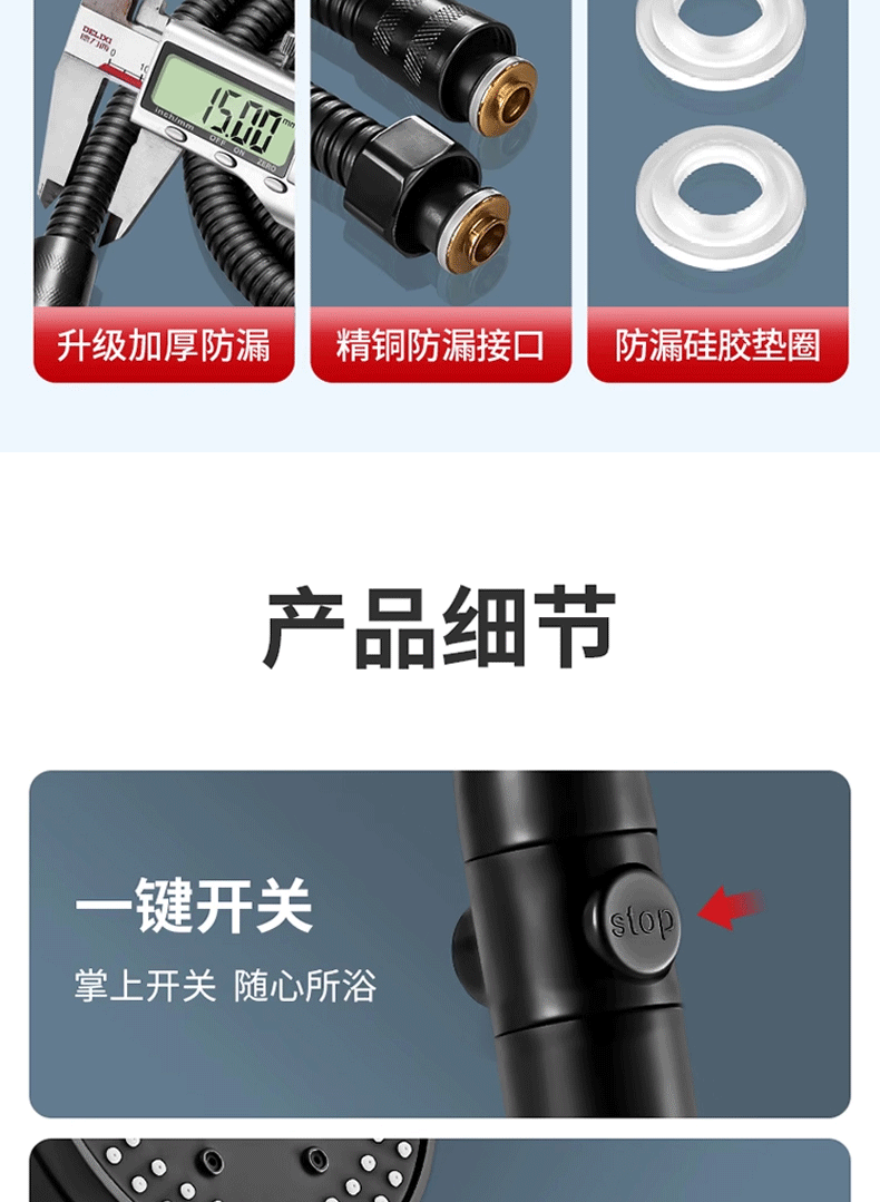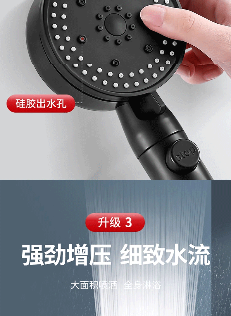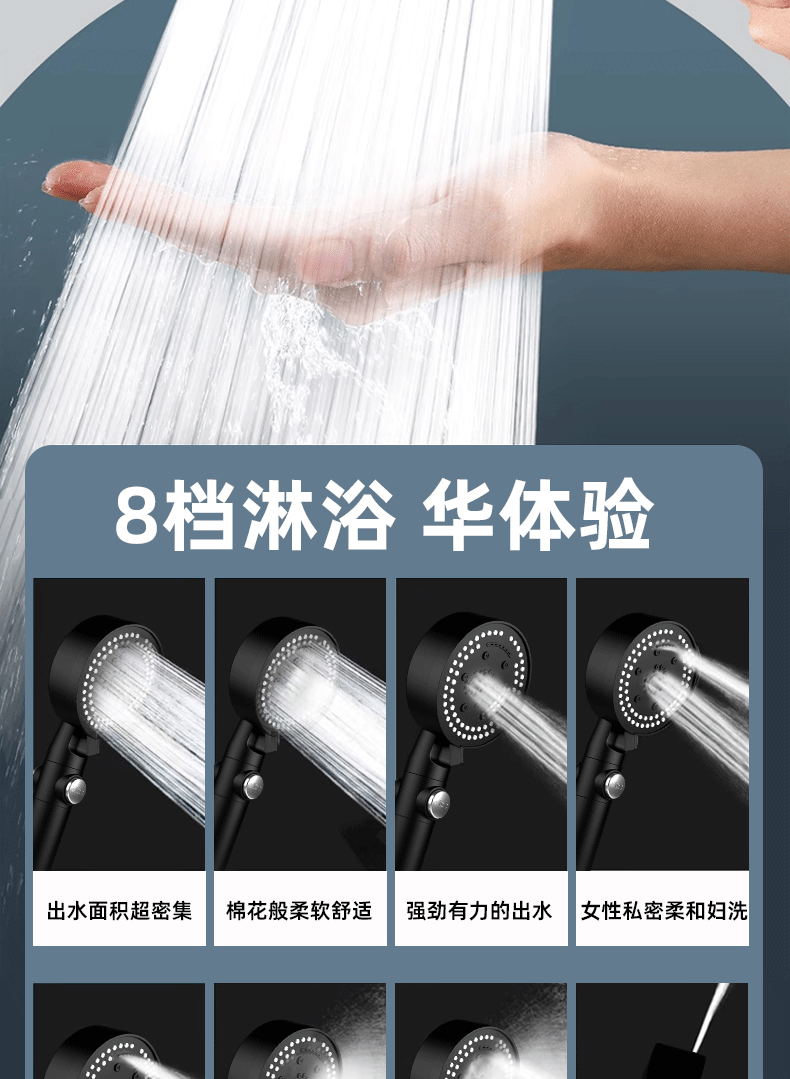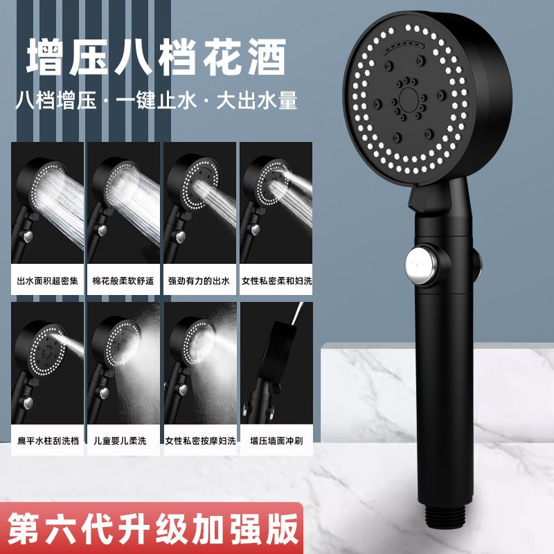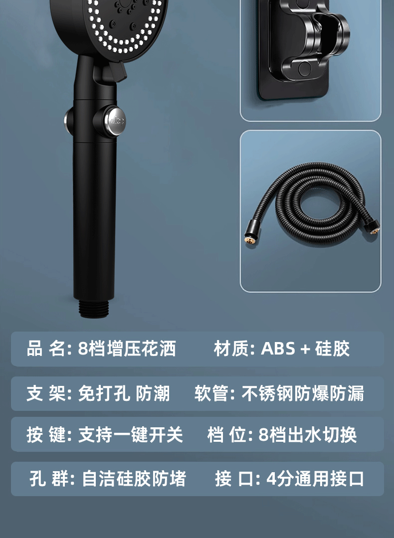 • 블랙 8 단 슈퍼 차저 샤워 + 1.5 m 폭발 방지 튜브 + 샤워 브래킷