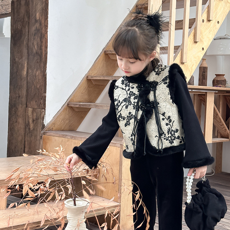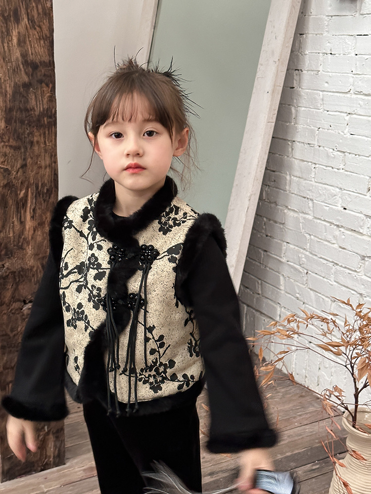 [기모] 아이모 베이비걸의 중국식 버클 개량된 치파호 조끼 자카드 면조끼 조끼복