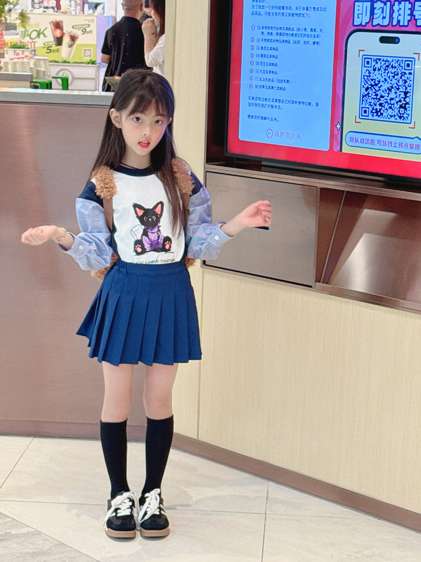 어린이 주름 치마 어린이 의류 여름 새로운 도착 컬로트 가을 및 겨울 사계절 아카데미 스타일 2023 공연 의류 A-라인 스커트 짧은 치마