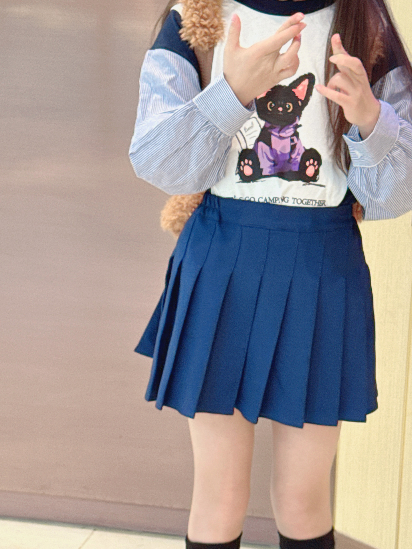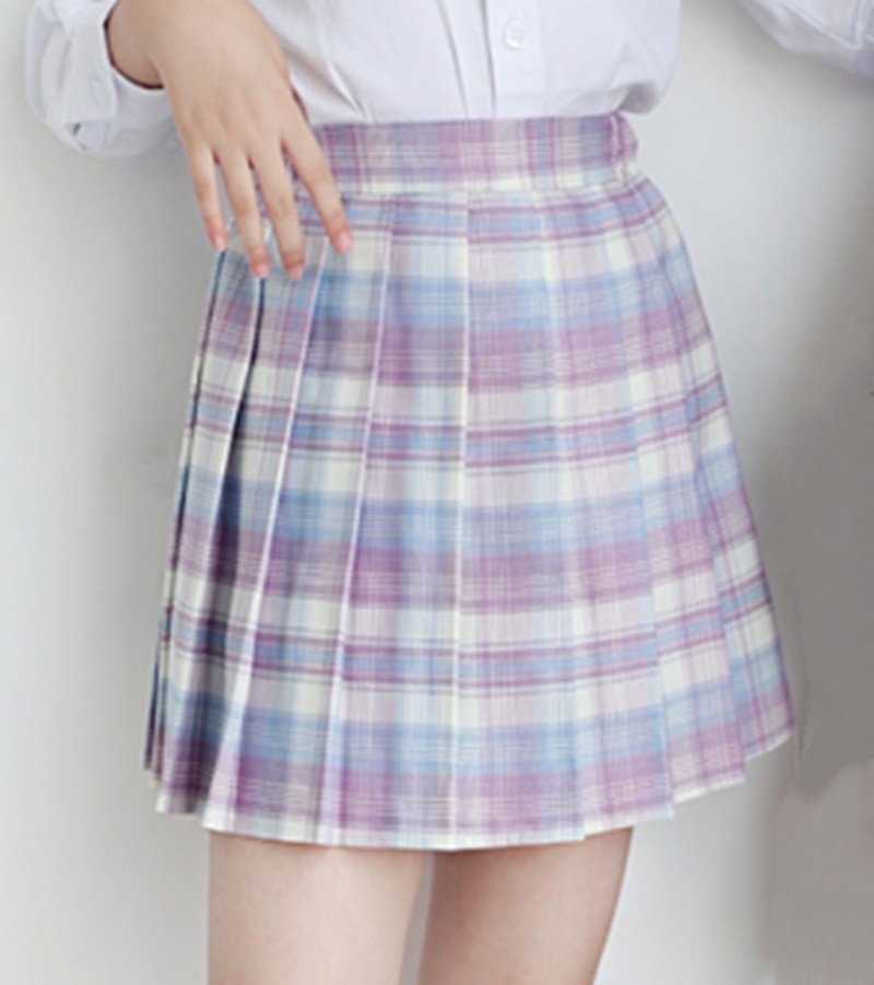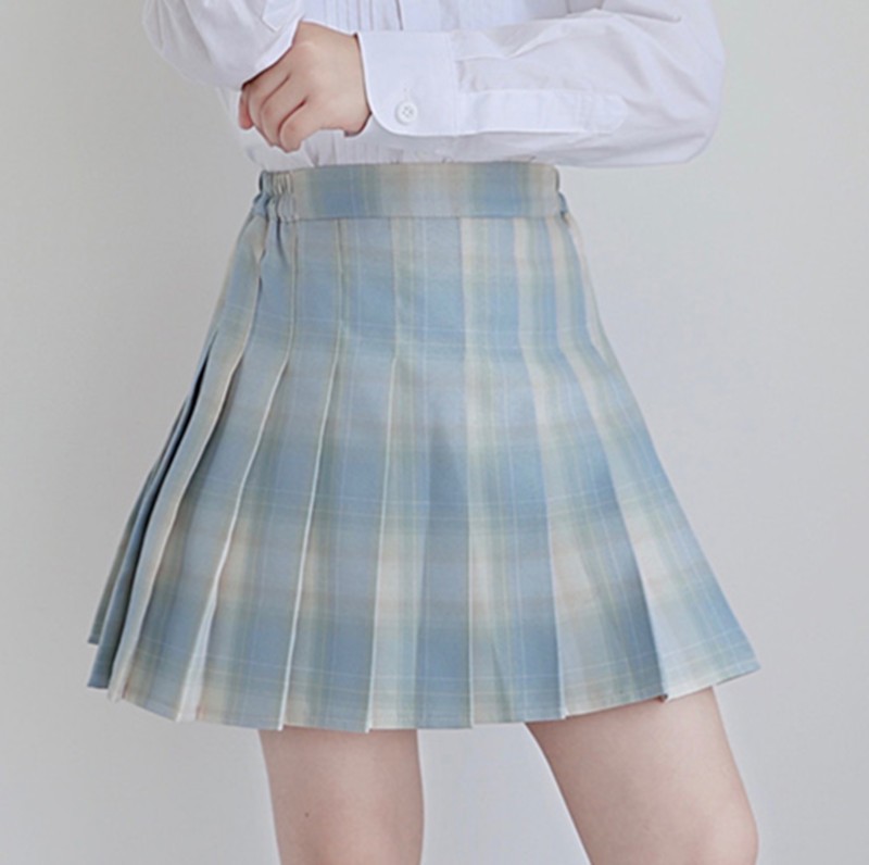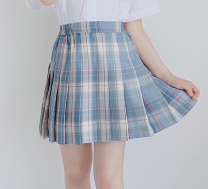• 코발트 블루 체크 무늬 1805 플리츠 스커트