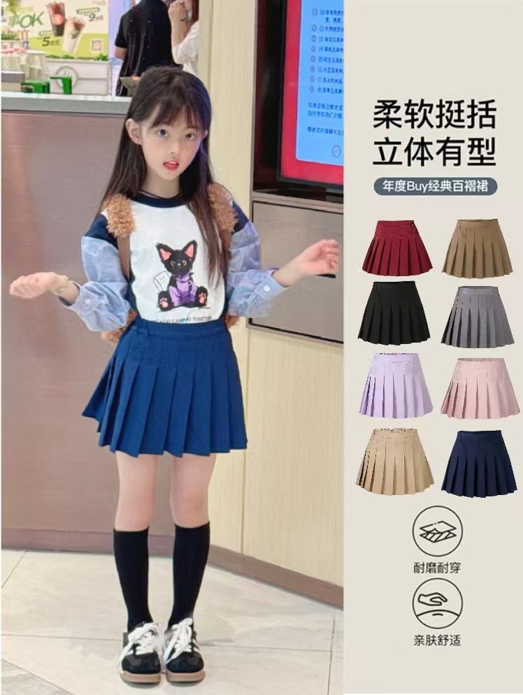 어린이 주름 치마 어린이 의류 여름 새로운 도착 컬로트 가을 및 겨울 사계절 아카데미 스타일 2023 공연 의류 A-라인 스커트 짧은 치마스토어 가기