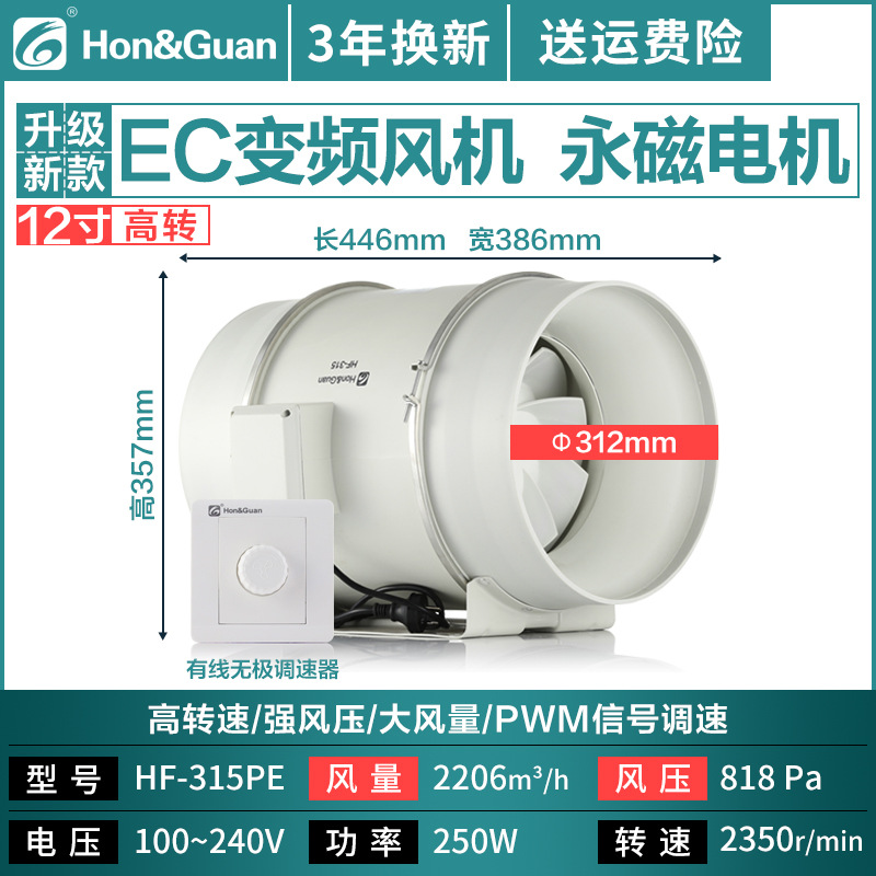 • 12inch HF-315PE(무단계 속도 스위치) EC 가변 주파수 팬