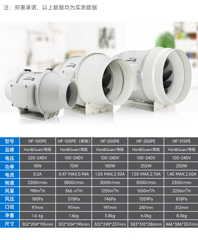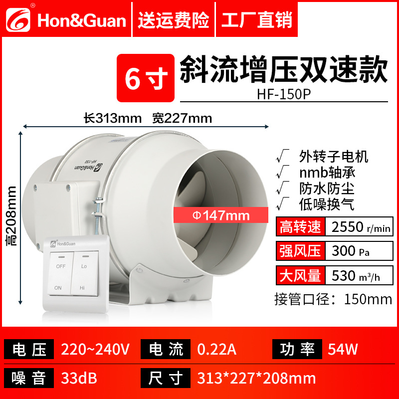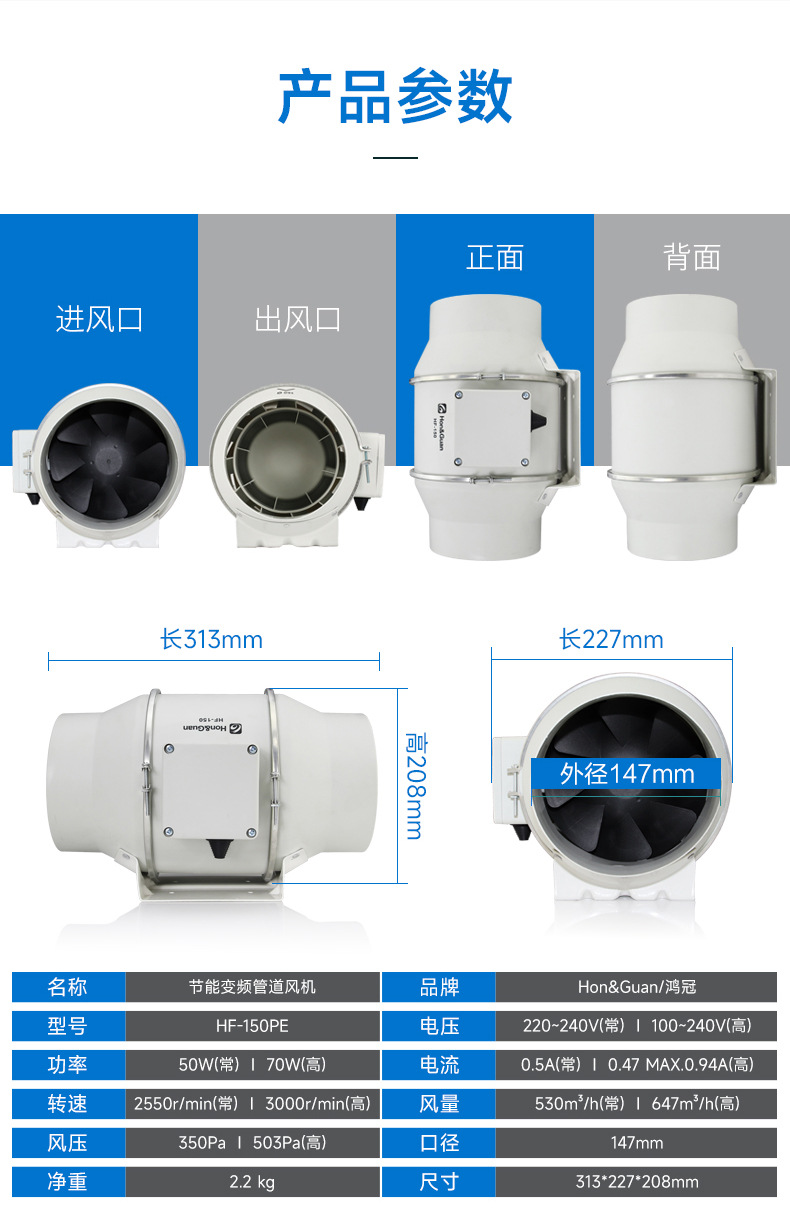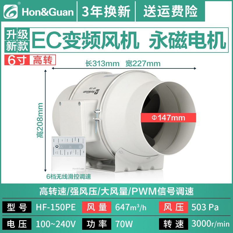 • 6inch HF-150PE (2550 RPM * 무단 변속 스위치) EC 인버터 팬