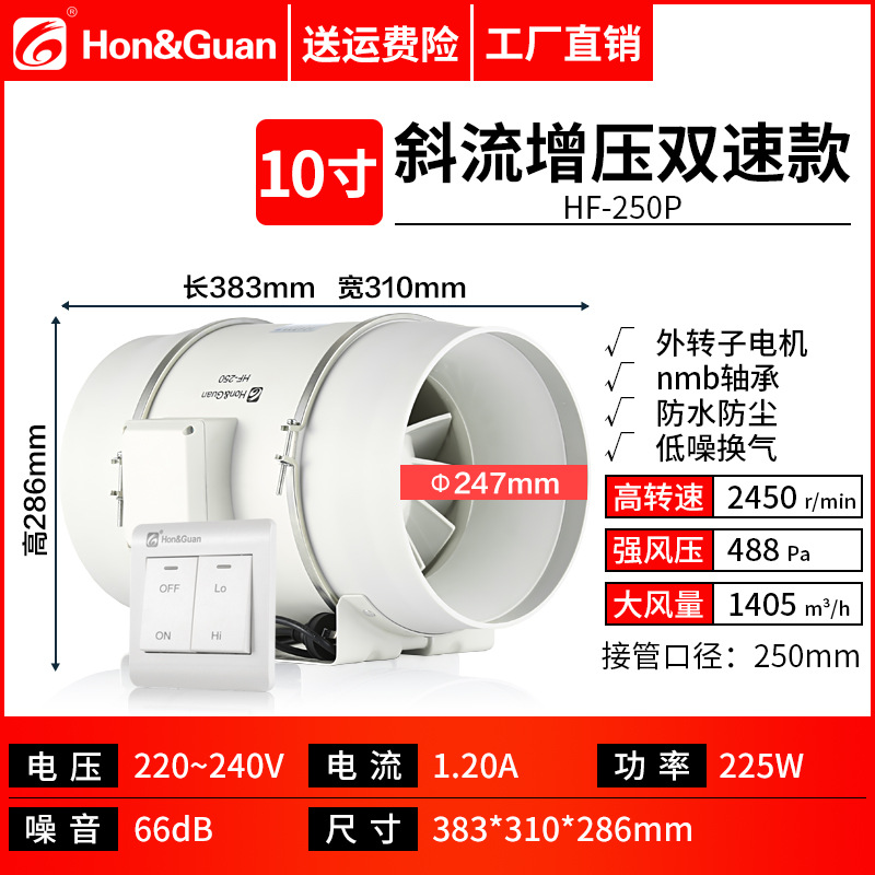 • 10inch HF-250P(이중 속도 스위치) AC 고정 주파수 팬