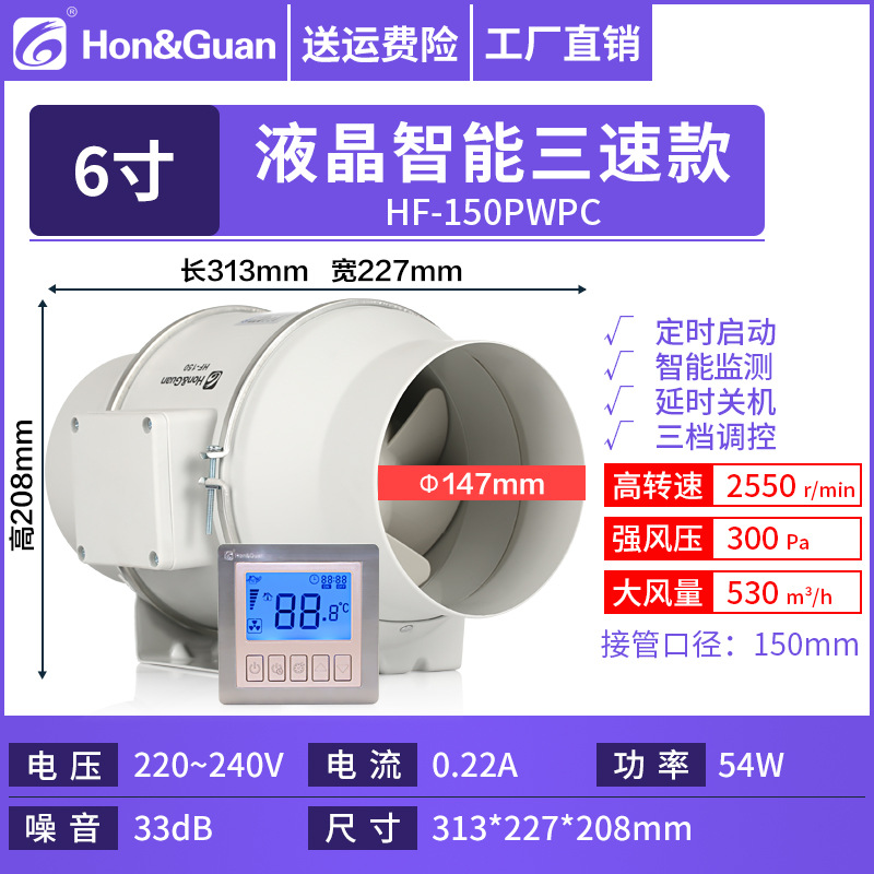• 6inch HF-150PE (3000RPM * LCD 9단 스마트 스위치) EC 인버터 팬