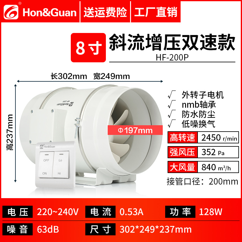 • 8inch HF-200P(이중 속도 스위치) AC 고정 주파수 팬