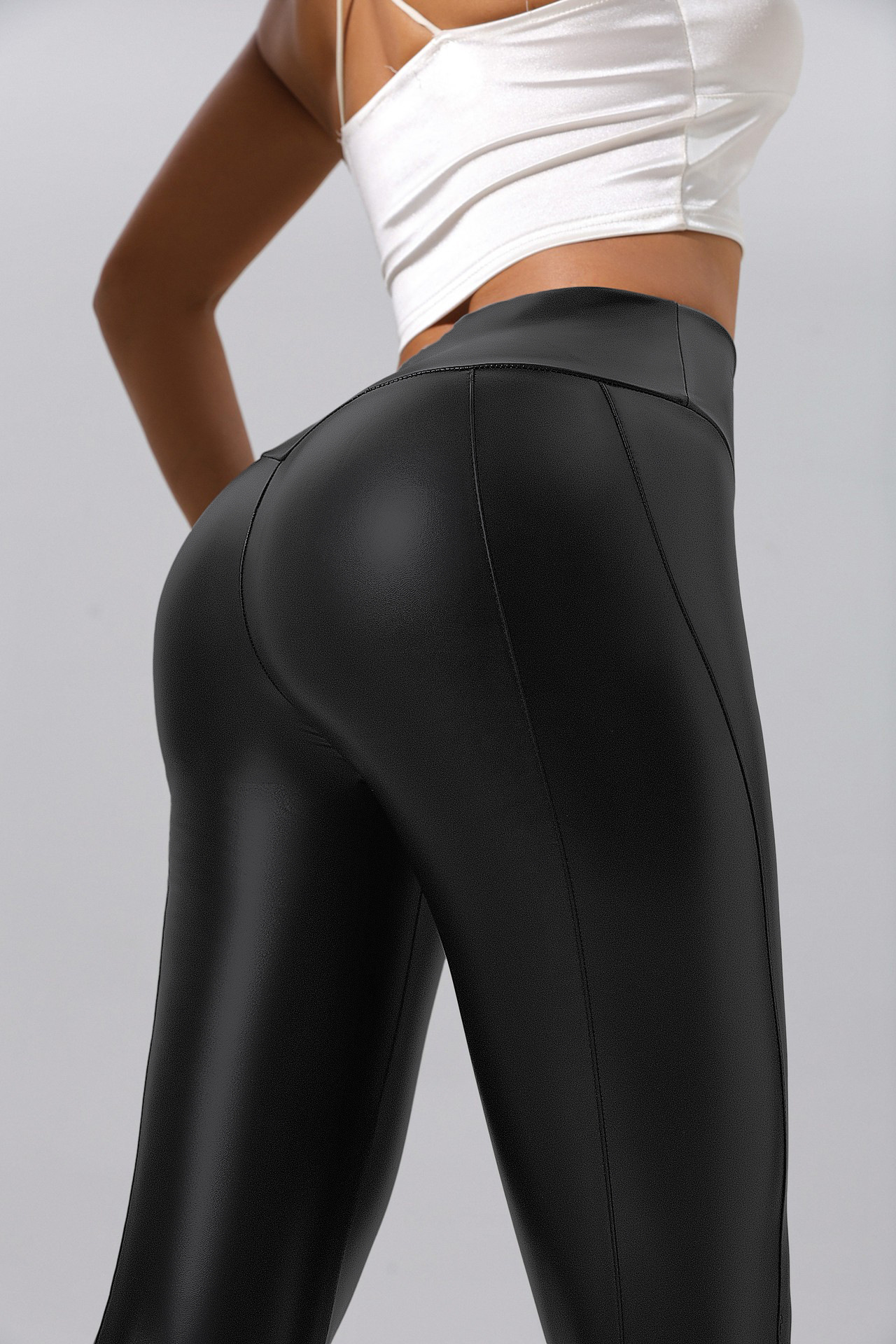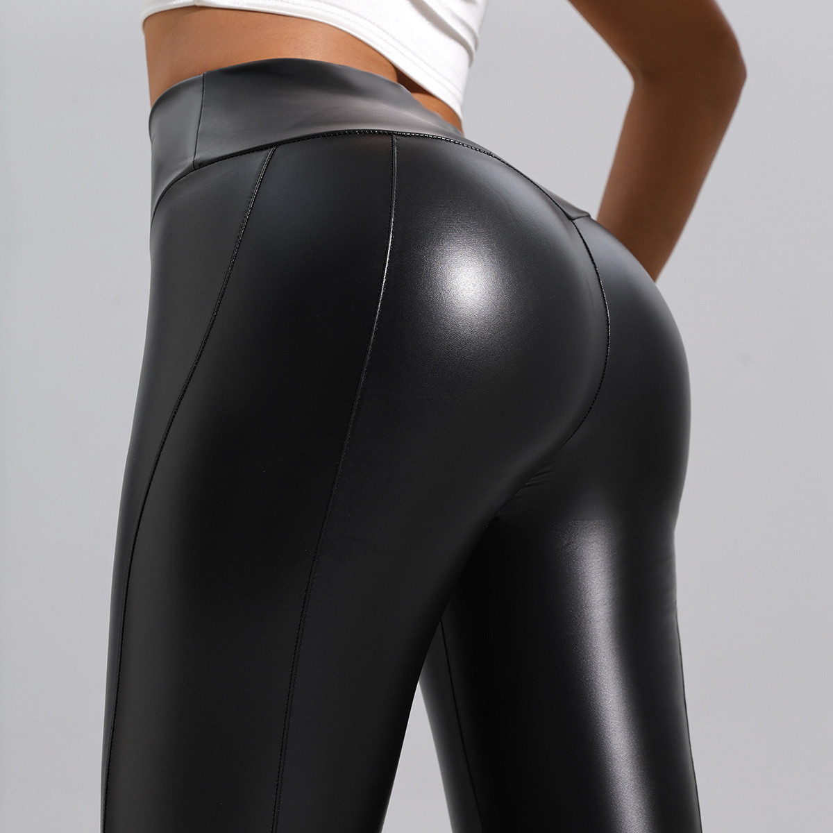 스포트 크로스 국경 새로운 유럽 및 미국 스티칭 PU 가죽 바지 높은 탄성 단색 밝은 검은 색 타이트 바지 달리기 피트니스 요가 바지스토어 가기