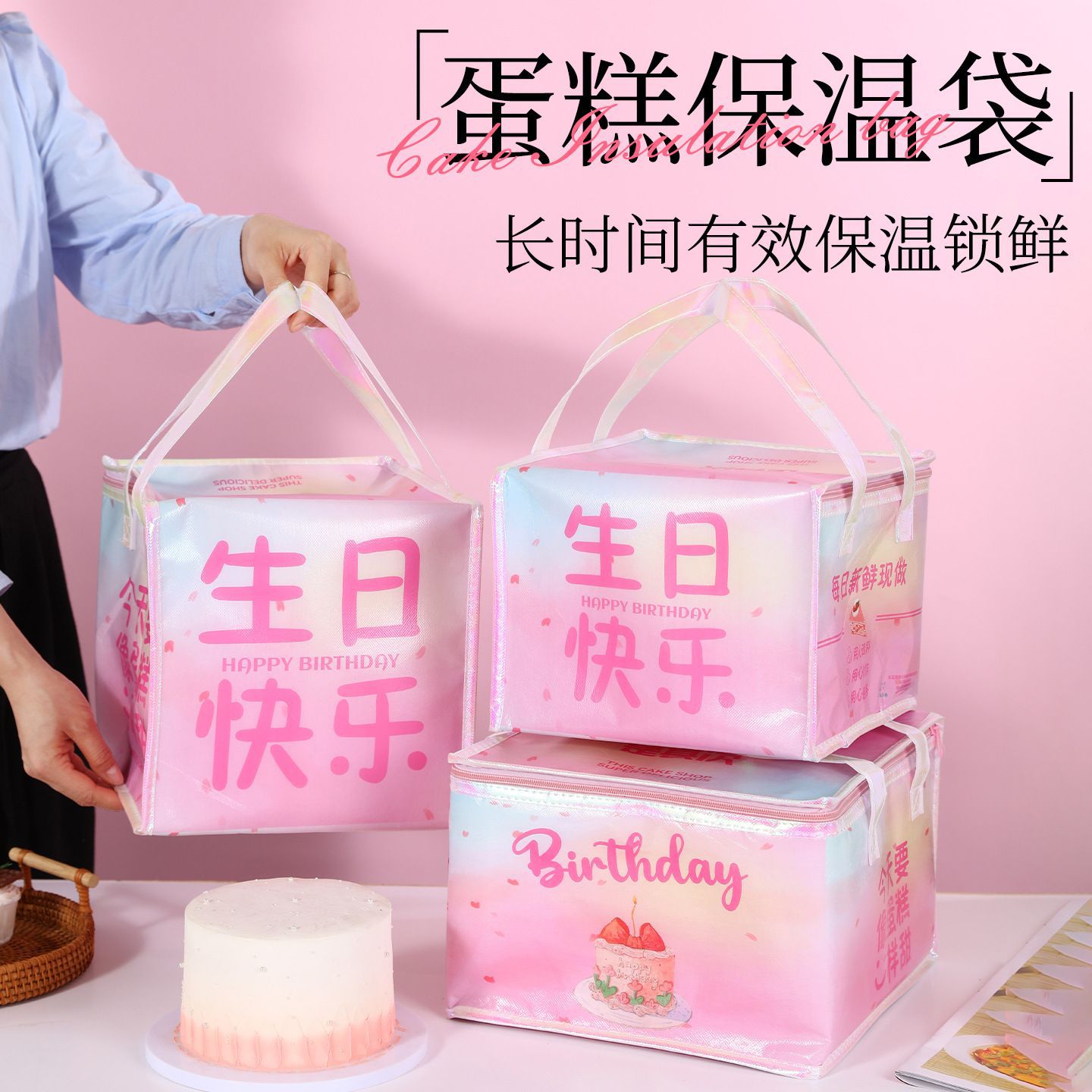 휴대용 케이크 다채로운 보온 가방 디저트 테이크아웃 알루미늄 호일 가방 진주 면 신선도 유지 가방 일회용 포장 가방 도매