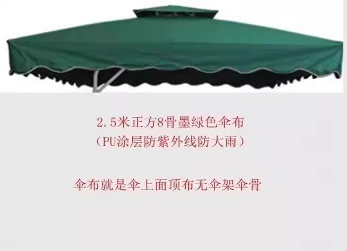 • 2.5 m 사각형 8-뼈 다크 그린 차양 우산 천