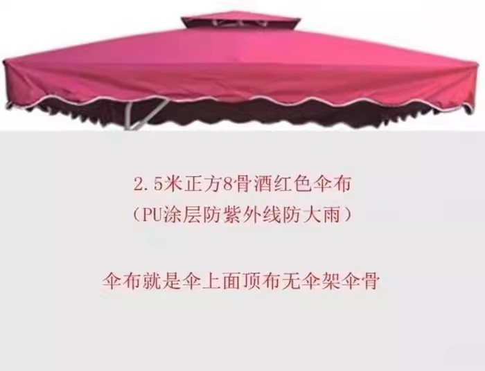• 2.5 m 사각형 8-뼈 버건디 차양 우산 천