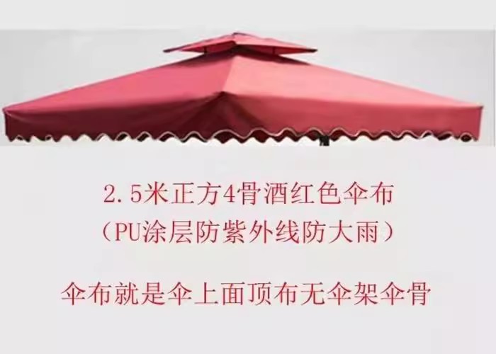 • 2.5 m 사각형 4-뼈 버건디 차양 우산 천