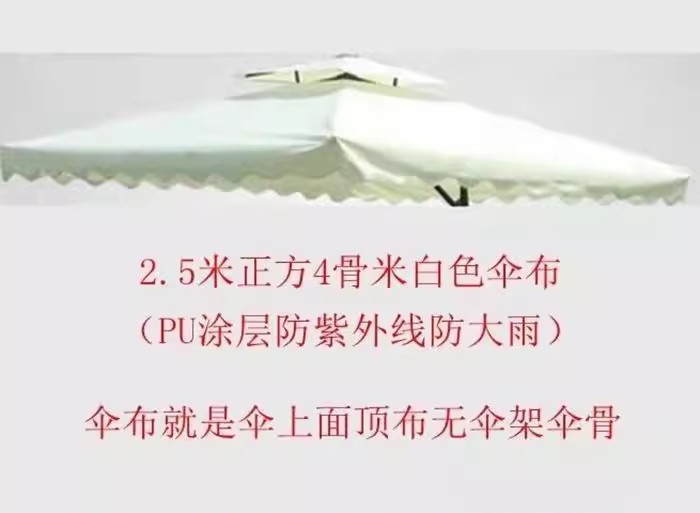 • 2.5 m 사각형 4-뼈 아이보리 차양 우산 천