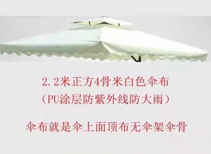 • 2.2 m 사각형 4-뼈 아이보리 차양 우산 천