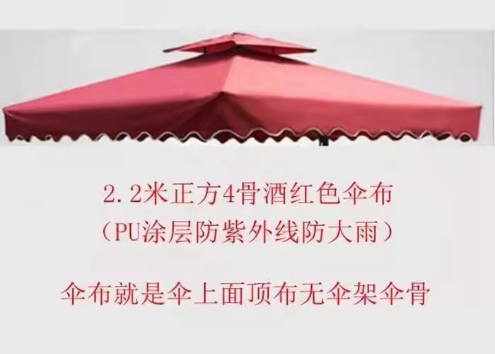 • 2.2 m 사각형 4-뼈 버건디 차양 우산 천
